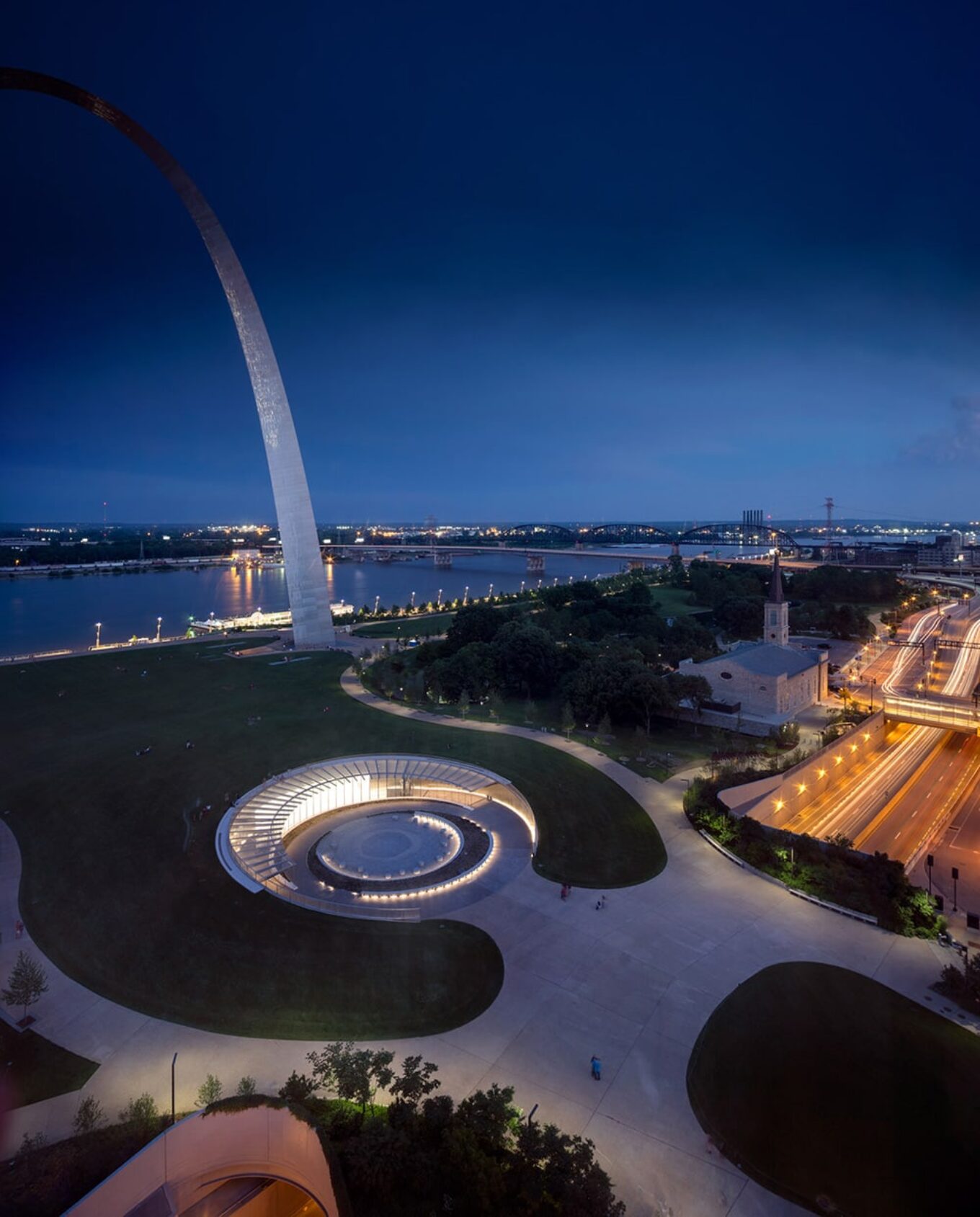 Крыша музея и все пространства вокруг стальной арки покрыты газоном. Над скоростной автомагистралью, которая ранее ограничивала территорию парка, появилась эстакада, и теперь пешеходная зеленая зона простирается до самого здания Old Courthouse.
