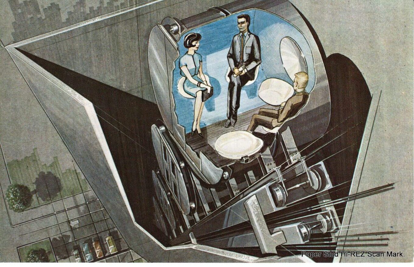 Скетч с изображением уникального лифта, на котором посетители поднимаются на смотровую площадку. Источник изображения: Gateway Arch Park Foundation