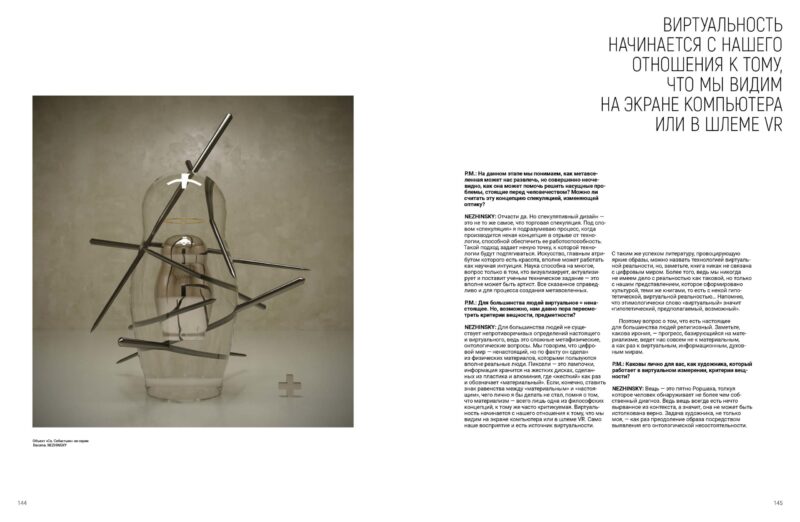 NEZHINSKY: Почасти так. Але спекулятивний дизайн — це не те саме, що торгова спекуляція. Під словом «спекуляція» я маю на увазі процес, коли виробляється певна концепція у відриві від технології, здатної забезпечити її працездатність. Такий підхід задає певну точку, до якої технології підтягуватимуться.