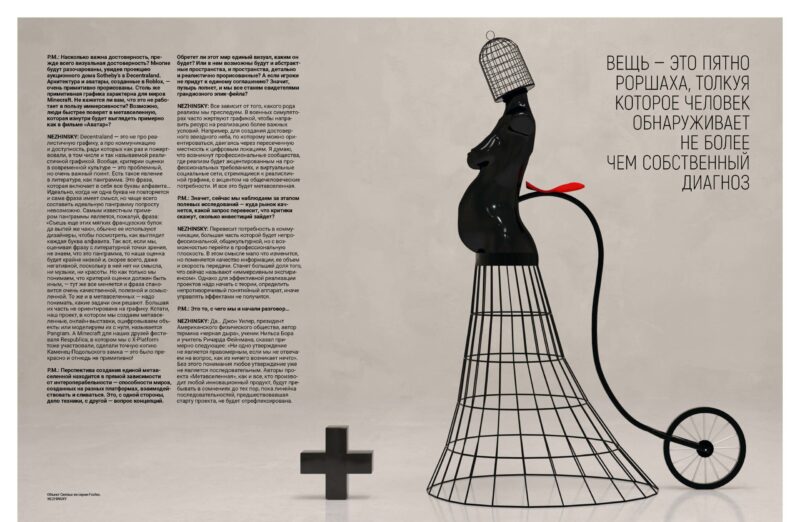 P.M.: Перспектива створення єдиного метавсесвіту прямо залежить від інтероперабельності — здатності світів, створених на різних платформах, взаємодіяти та зливатися. Це, з одного боку, справа техніки, а з іншого — питання концепцій.