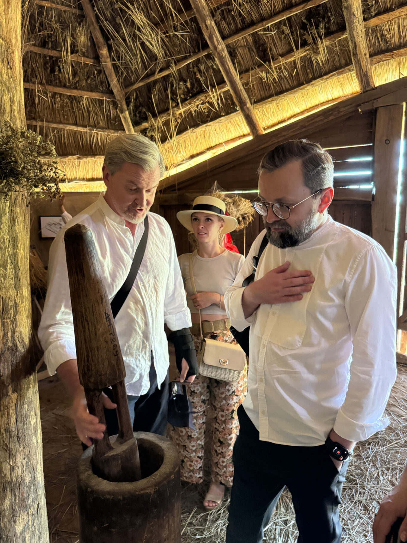 Експерт показав гостям усі споруди, що формують експозицію регіону. Архітектори, які були присутні на події, дізналися, чому крізь солом’яні та очеретяні стріхи ніколи не проникала вода та як українці боролися зі шкідниками, що пошкоджували природні матеріали. «Коли майстри ремонтували дах на хаті, вони спочатку укладали шар, потім — поливали його водою. І так знову і знову», — розкрив секрет якості виконання робіт науковець.