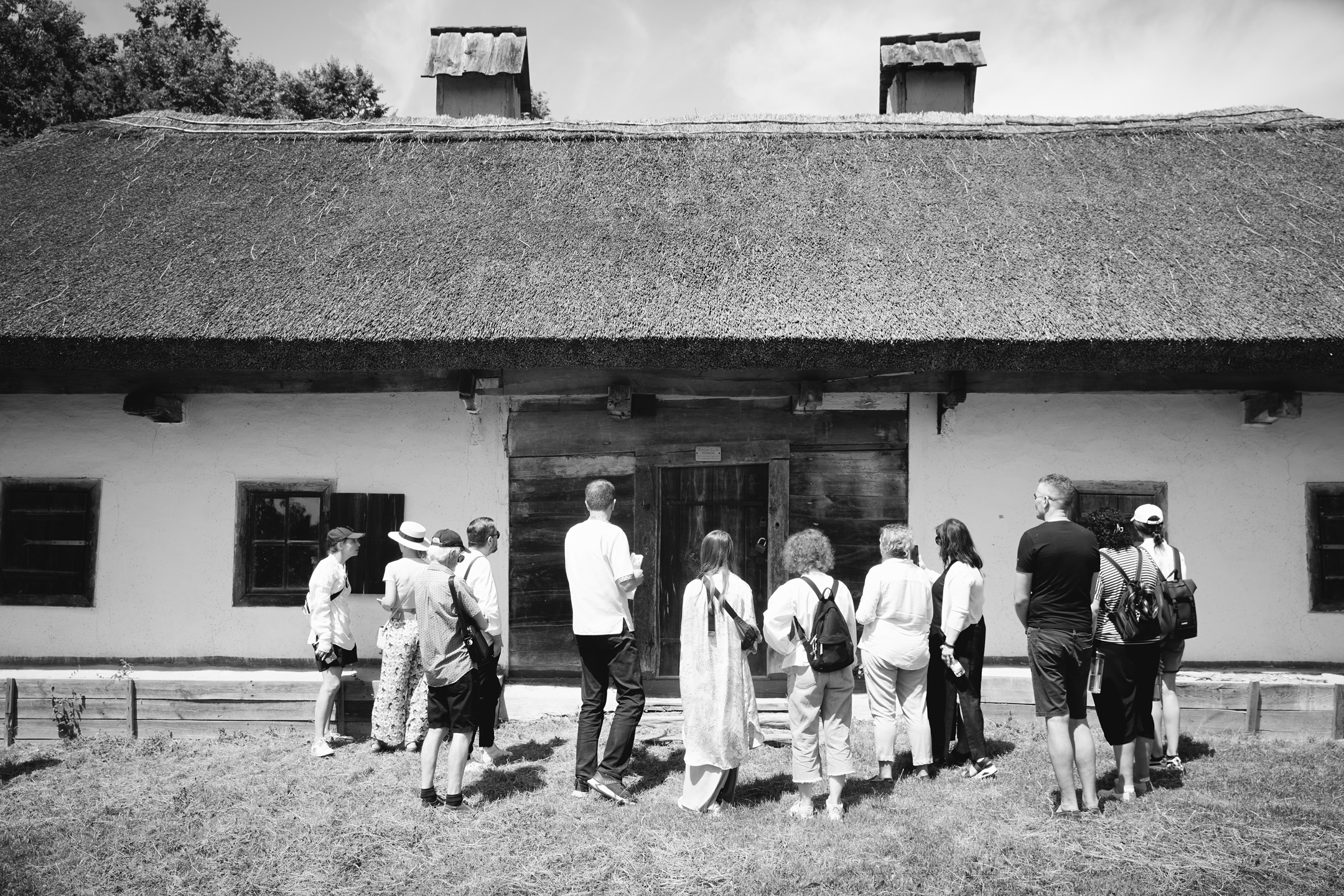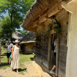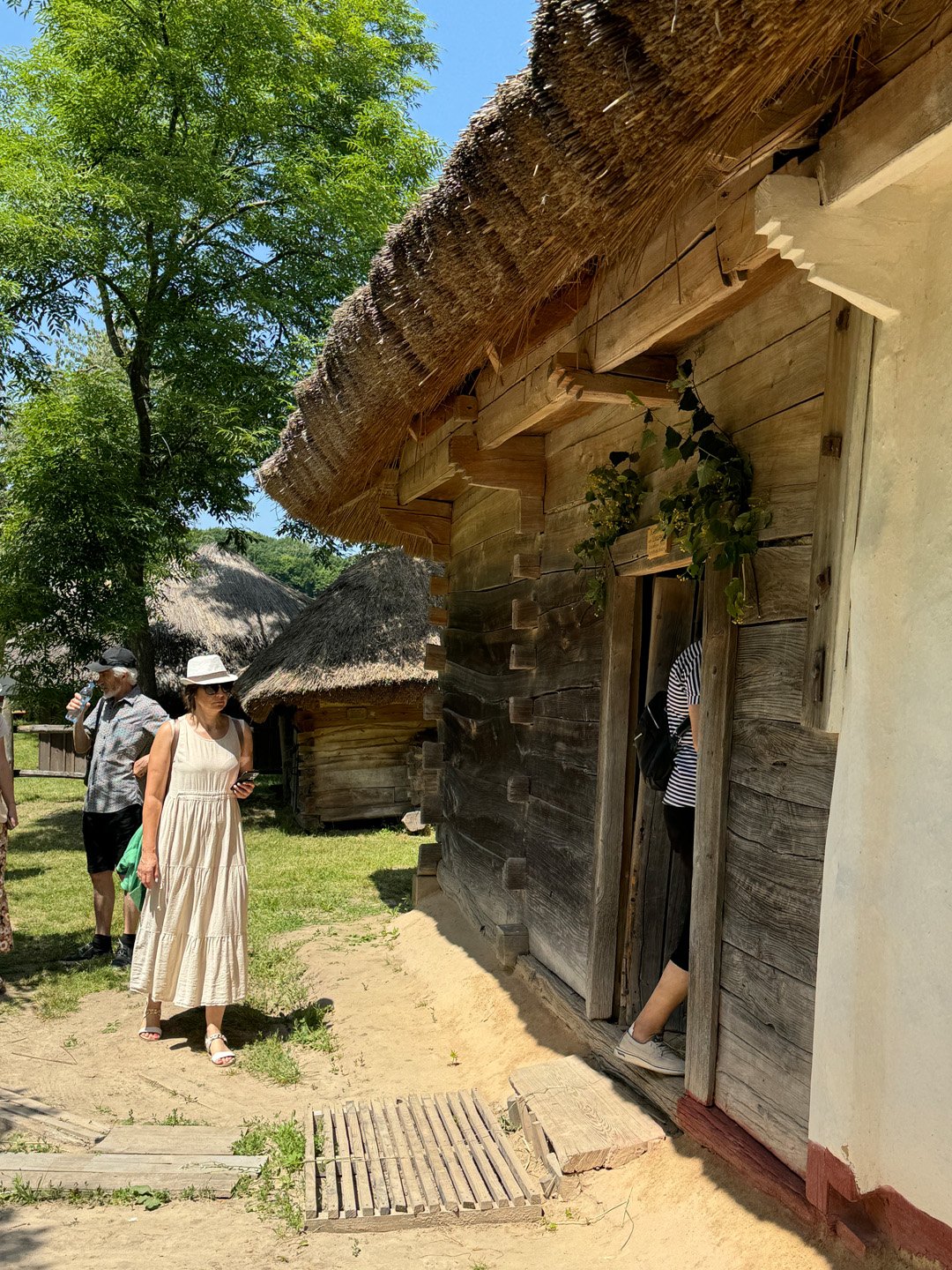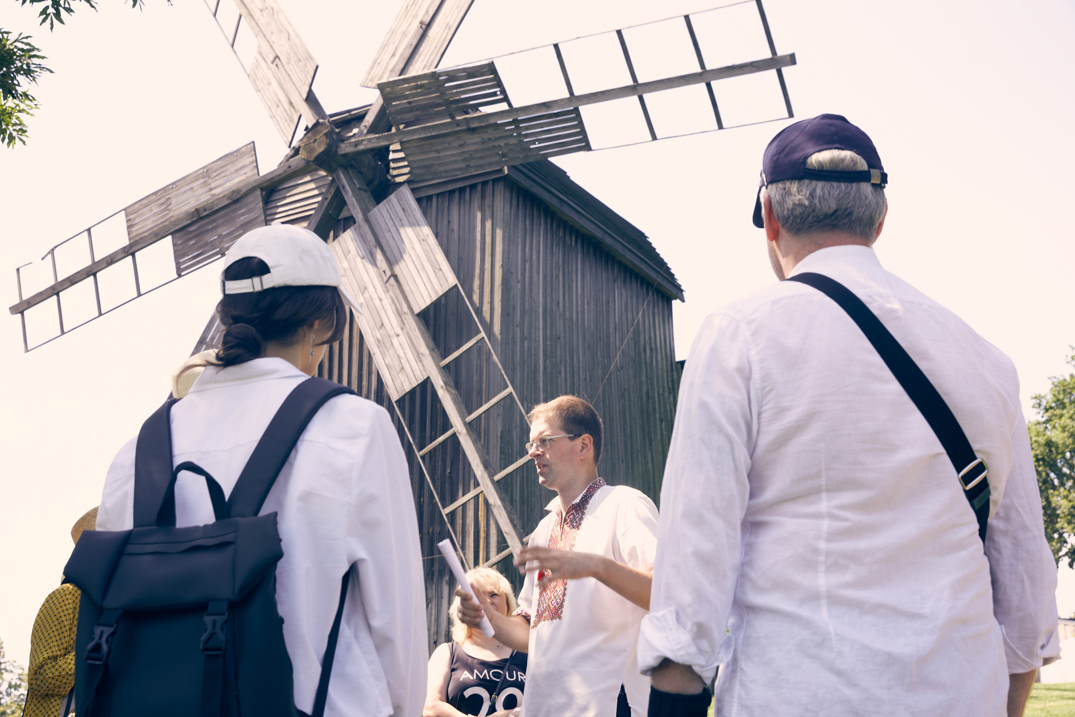 Під час прогулянки локацією «Полтавщина та Слобожанщина» гостям розповіли про архітектурний досвід, накопичений полтавськими та слобожанськими селянами. Максим Главацький, старший науковий співробітник у Національному музеї народної архітектури та побуту України, розпочав розповідь з екскурсу в історію. «Площа Музею просто неба становить 130 гектарів. Нині це найбільший музей у Європі! Наша територія поділена на 7 локацій, і сьогодні ми з вами прогуляємося по першій із них. Коли з’явилася ідея побудови музею, потрібно було знайти місце, різні локації якого нагадували б ландшафт відповідних семи регіонів країни. Вибір припав на селище Пирогів, яке тоді передмістям Києва. Протягом довгих 7 років, з 1969 по 1976 рік, працівники музею, етнографи, архітектори, фольклористи, історики та археологи їздили по Україні і збирали «матеріал» для майбутніх садиб. Експонати привозили в розібраному вигляді й укомплектовували на місці. Нині в музеї налічується 95 тисяч експонатів, але для широкого загалу відкрито лише орієнтовно 35–36 тисяч». Це не тільки споруди, а й знаряддя праці, предмети побуту.