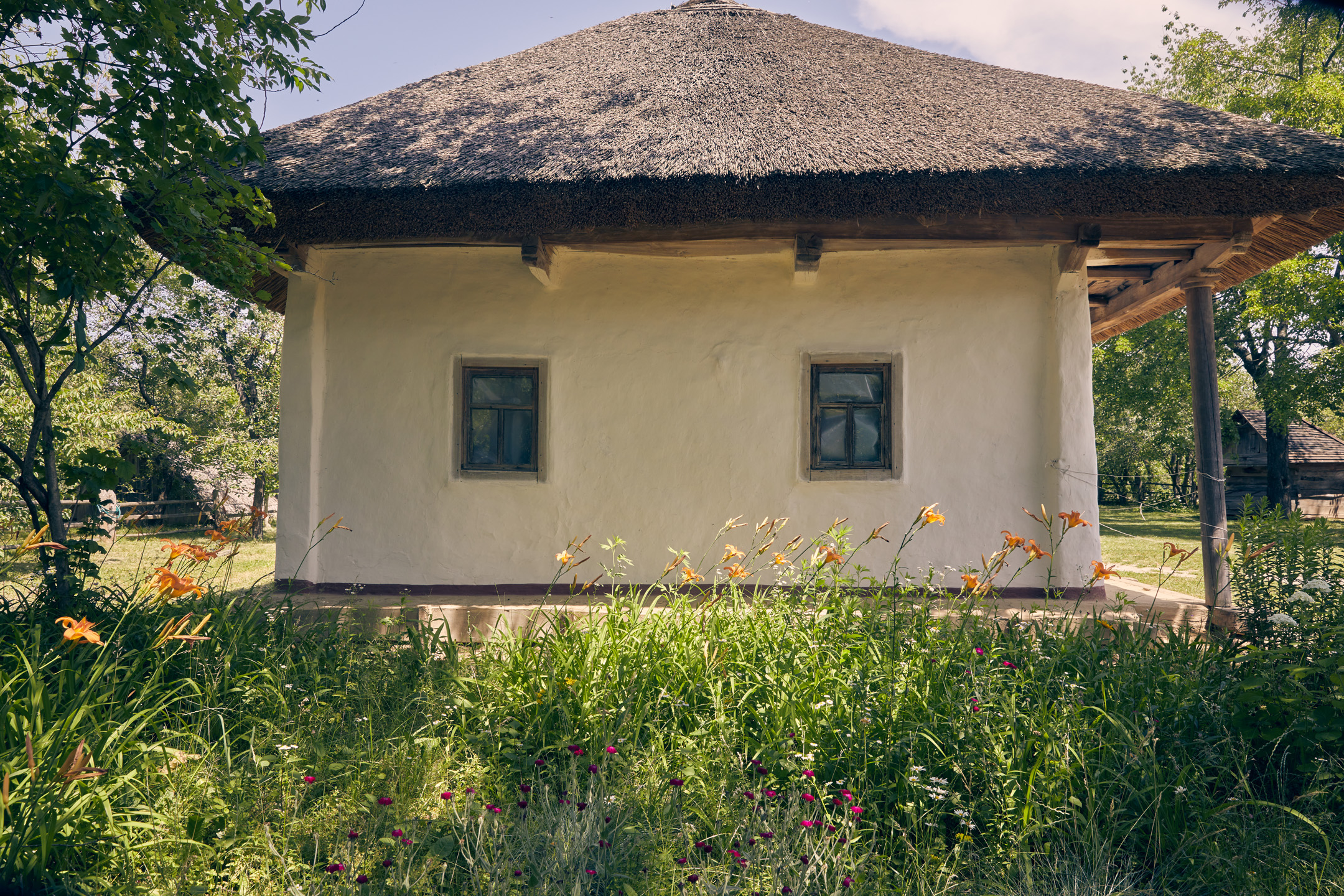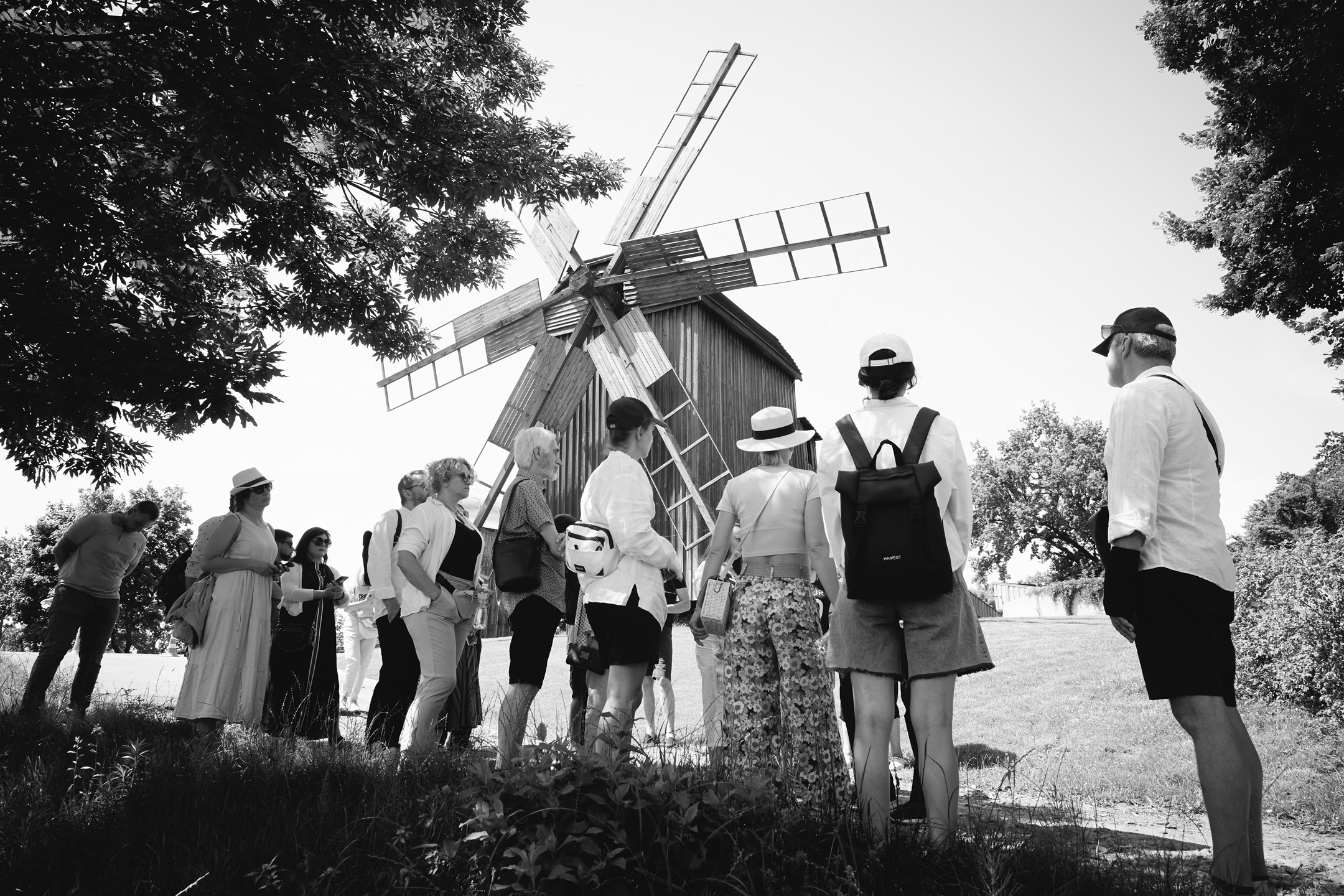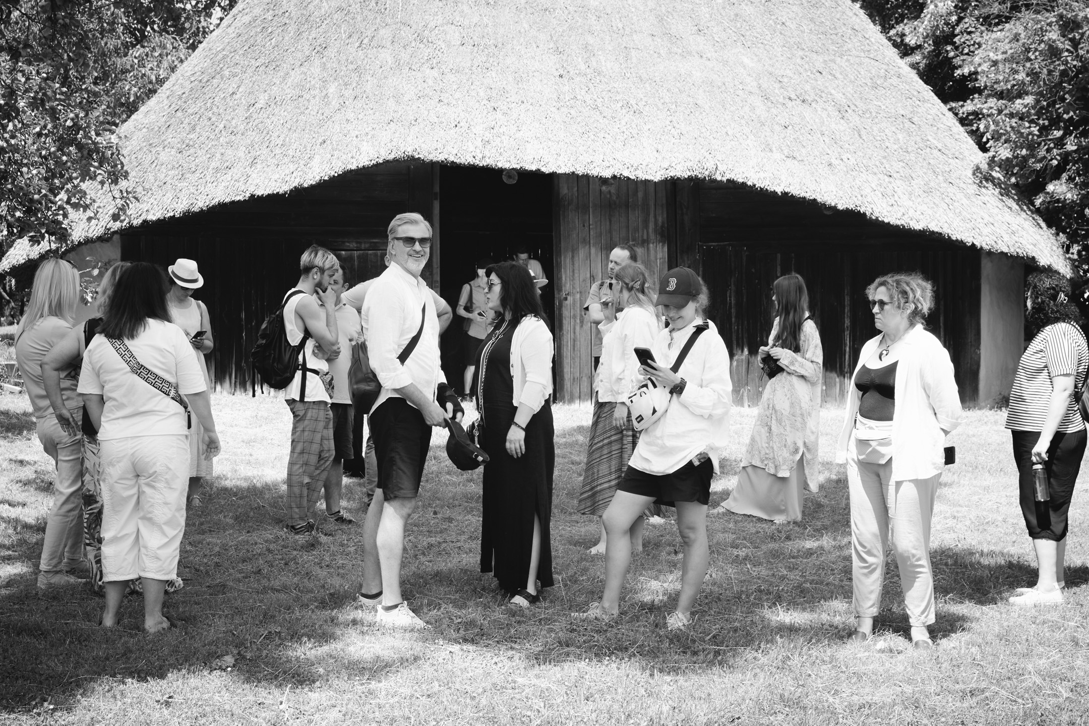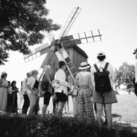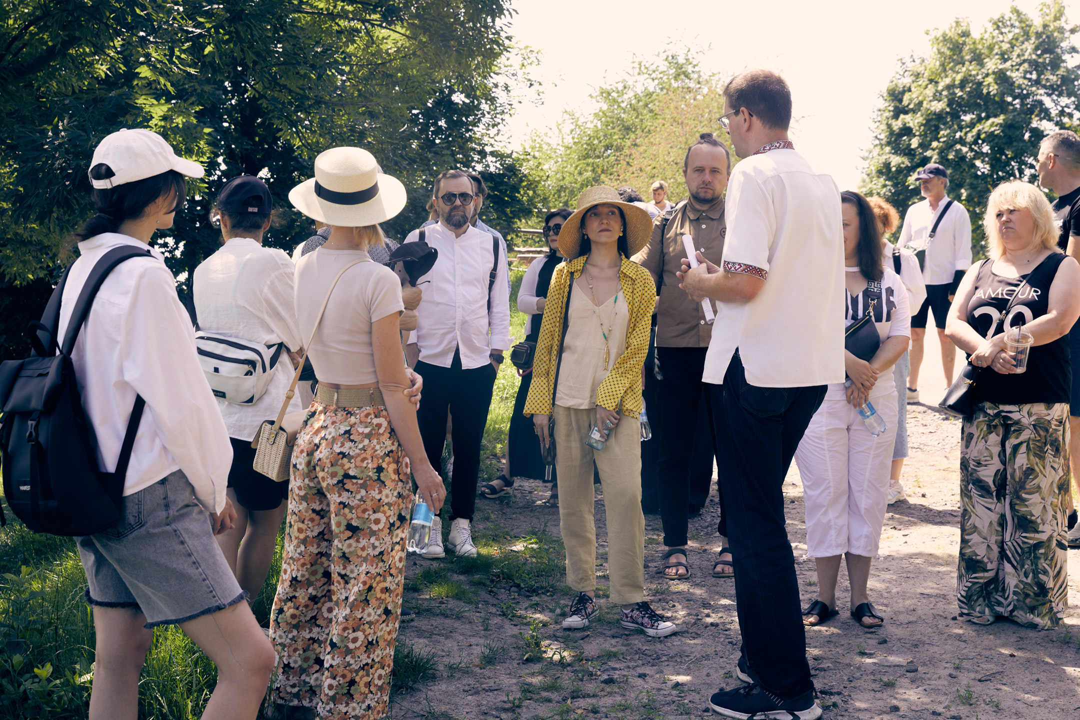 Під час прогулянки локацією «Полтавщина та Слобожанщина» гостям розповіли про архітектурний досвід, накопичений полтавськими та слобожанськими селянами. Максим Главацький, старший науковий співробітник у Національному музеї народної архітектури та побуту України, розпочав розповідь з екскурсу в історію. «Площа Музею просто неба становить 130 гектарів. Нині це найбільший музей у Європі! Наша територія поділена на 7 локацій, і сьогодні ми з вами прогуляємося по першій із них. Коли з’явилася ідея побудови музею, потрібно було знайти місце, різні локації якого нагадували б ландшафт відповідних семи регіонів країни. Вибір припав на селище Пирогів, яке тоді передмістям Києва. Протягом довгих 7 років, з 1969 по 1976 рік, працівники музею, етнографи, архітектори, фольклористи, історики та археологи їздили по Україні і збирали «матеріал» для майбутніх садиб. Експонати привозили в розібраному вигляді й укомплектовували на місці. Нині в музеї налічується 95 тисяч експонатів, але для широкого загалу відкрито лише орієнтовно 35–36 тисяч». Це не тільки споруди, а й знаряддя праці, предмети побуту.