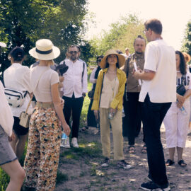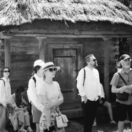 Експерт показав гостям усі споруди, що формують експозицію регіону. Архітектори, які були присутні на події, дізналися, чому крізь солом’яні та очеретяні стріхи ніколи не проникала вода та як українці боролися зі шкідниками, що пошкоджували природні матеріали. «Коли майстри ремонтували дах на хаті, вони спочатку укладали шар, потім — поливали його водою. І так знову і знову», — розкрив секрет якості виконання робіт науковець.