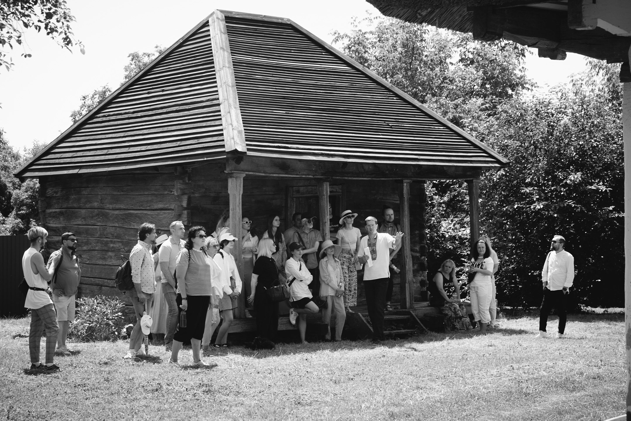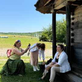 Учасники екскурсії не лише поспілкувалися з науковцями, які вивчають українську сільську архітектуру, але й обговорили нові ідеї з колегами. Фото: Максим Дробиненко