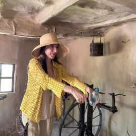 Також гості почули про те, як архітектура будинку поєднувала сакральне, професійне й побутове. «Найсакральніший момент у полтавській хаті — це піч. Зверніть увагу, на кожній печі можна побачити знак Христа. Символи відтворені за фотографіями, зібраними пів століття тому. Водночас зверніть увагу: піч та місце за піччю — це найтепліші зони в домі», — вказав експерт.