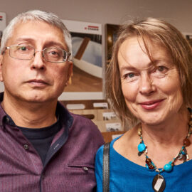 Олег Волосовський і Віра Зінченко на зустрічі архітекторів, присвяченій серії семінарів у «Музеї просто неба»