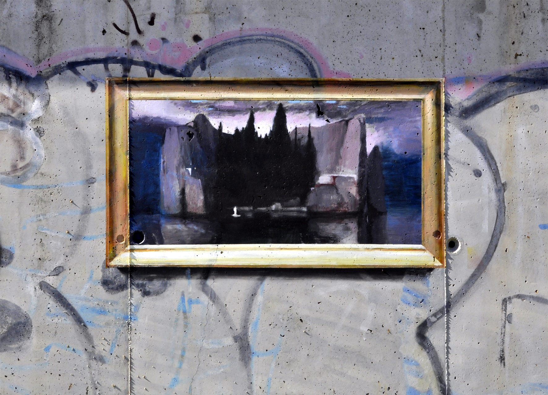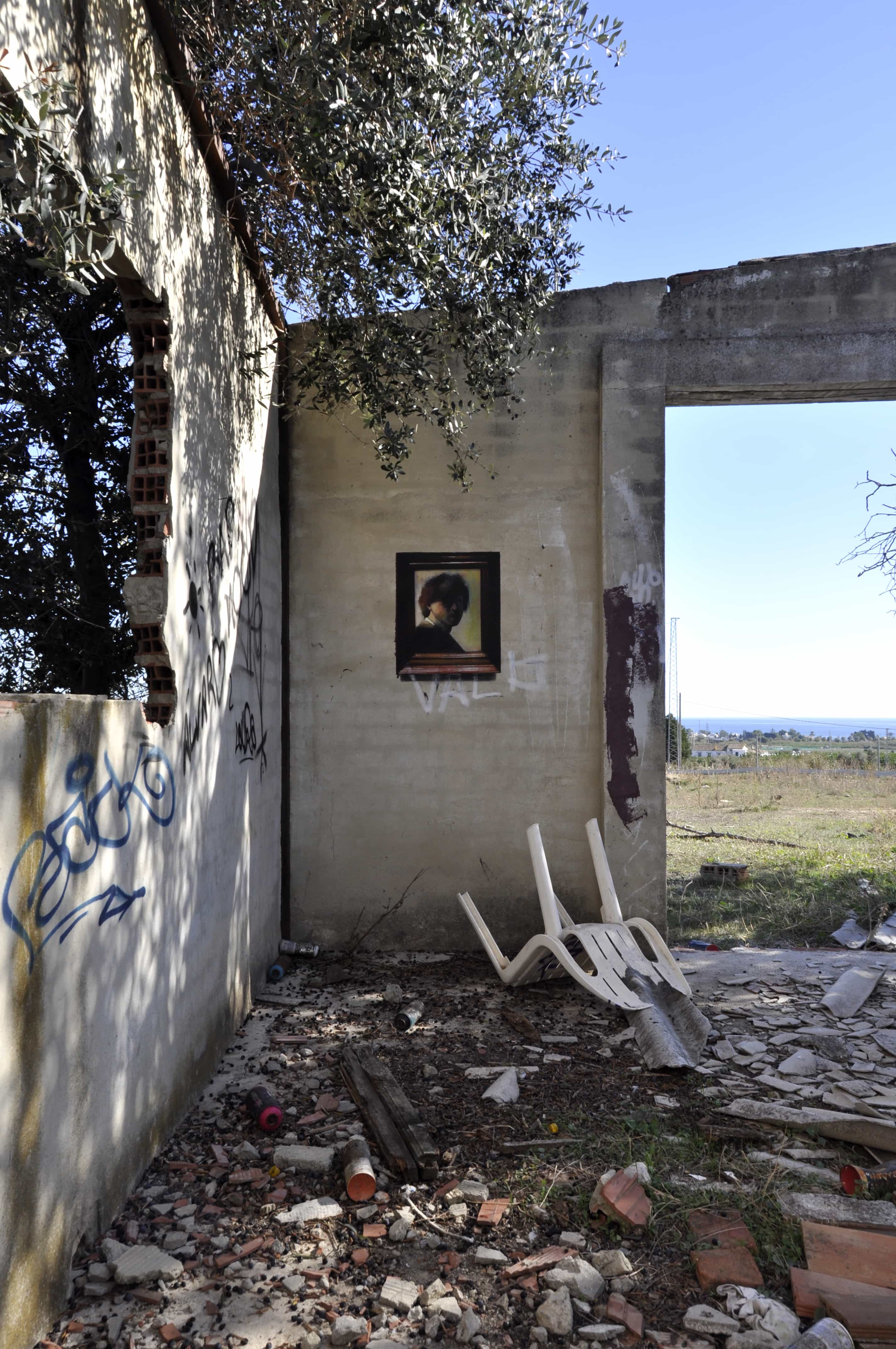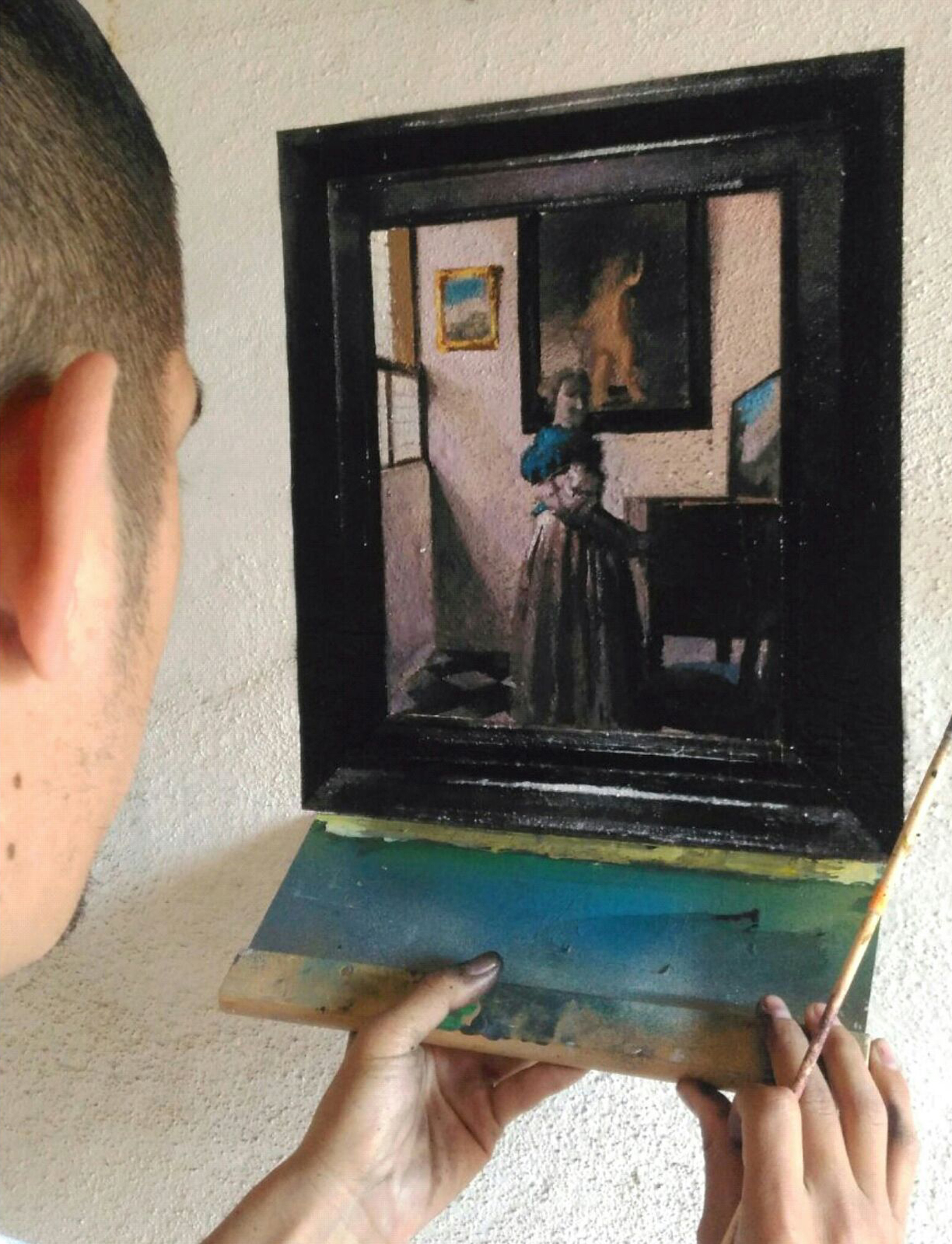 Хулио Анайя Кабандинг выбирает для работы неожиданные места: стены, расписанные граффити, бетонные ограждения, заброшенные строения. При этом он работает в технике оптической иллюзии: он не только с точностью копирует полотно, но и добавляет к нему раму. В результате кажется, что знаменитые полотна висят прямо на улице. Таким образом испанский художник пытается передать контраст с чистыми и ухоженными залами музеев и галерей – и организовать совершенно другой опыт знакомства с искусством.