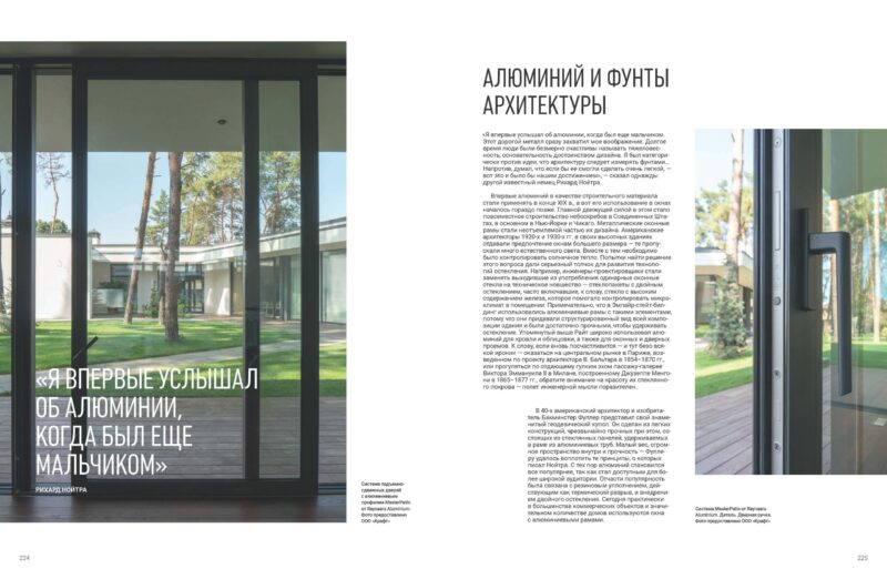 «Я впервые услышал об алюминии, когда был еще мальчиком. Этот дорогой металл сразу захватил мое воображение. Долгое время люди были безмерно счастливы называть тяжеловесность, основательность достоинством дизайна. Я был категорически против идеи, что архитектуру следует измерять фунтами… Напротив, думал, что если бы ее смогли сделать очень легкой, — вот это и было бы нашим достижением», — сказал однажды другой известный немец Рихард Нойтра.