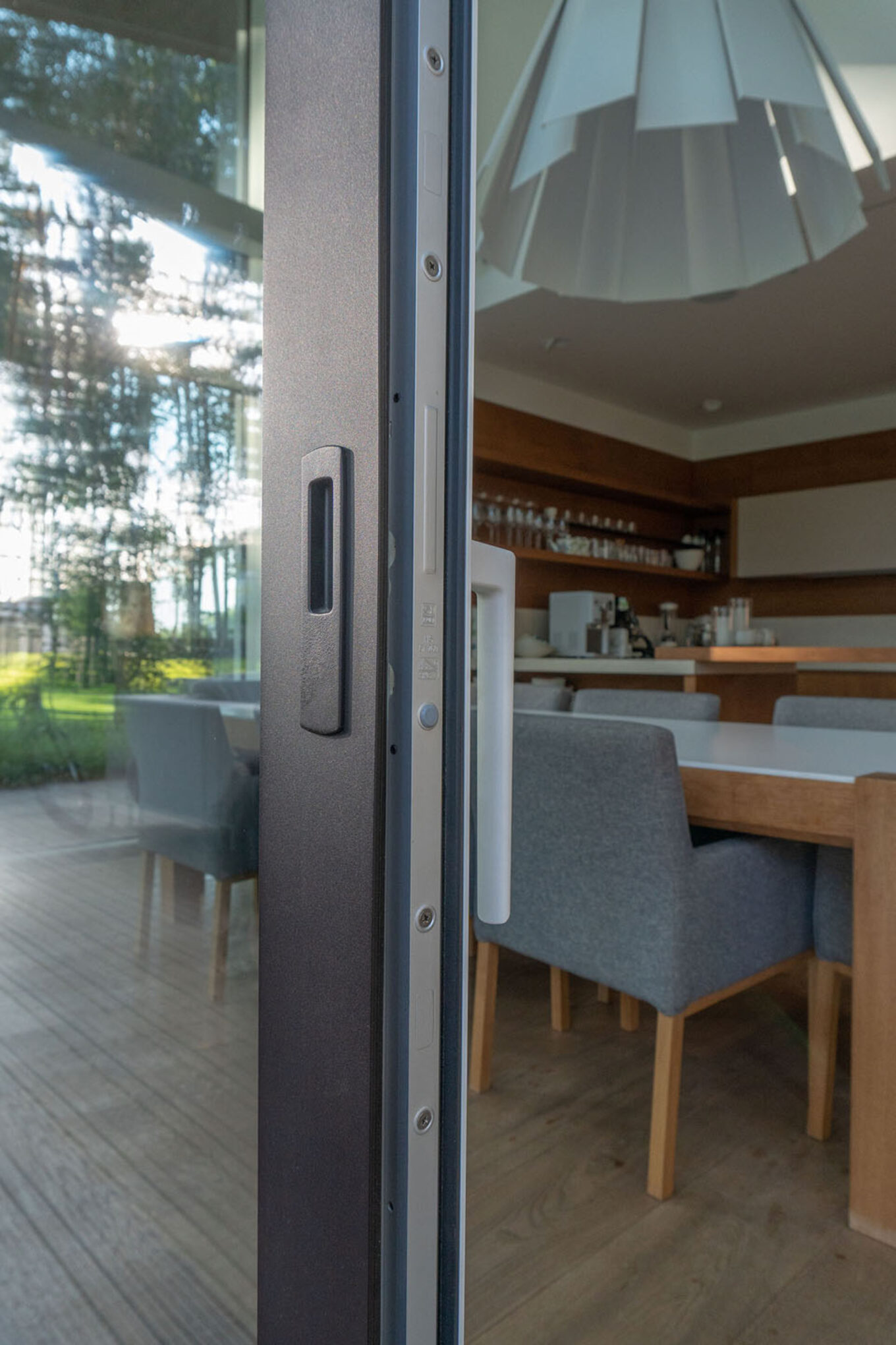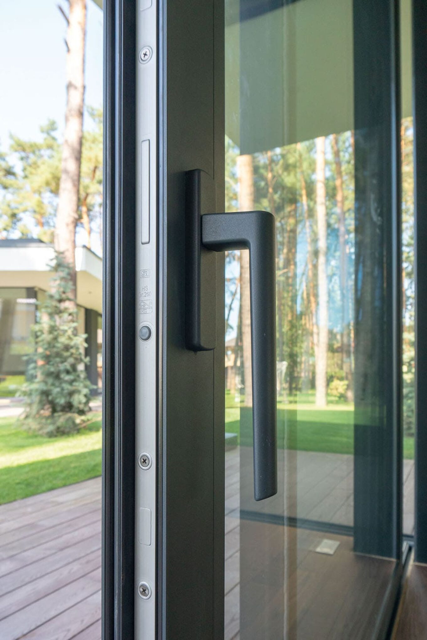 Это подъемно-сдвижная система, решенная в минималистском ключе, вплоть до деталей. Чтобы изготовить MasterPatio, требуются минимальные фрезерные операции, что в сочетании с простыми угловыми соединениями и просверленным дренажем в нижнем профиле позволяют произвести ее быстро и эффективно. Максимальная высота элементов 3,6 м, а идеальную передачу веса стекла на ролики слайдеров обеспечивают запатентованные опоры, повышая тем самым удобство работы сдвижных створок. Легкая и точная регулировка замка (3 мм) значительно упрощает установку системы на месте. Благодаря совместимости с MasterLine она безупречно сочетается с окнами и дверями, при этом акцент при разработке делался на сохранении чистоты линии обзора. Поэтому рамы и профили тут тонкие, чтобы обеспечить беспрепятственный обзор.