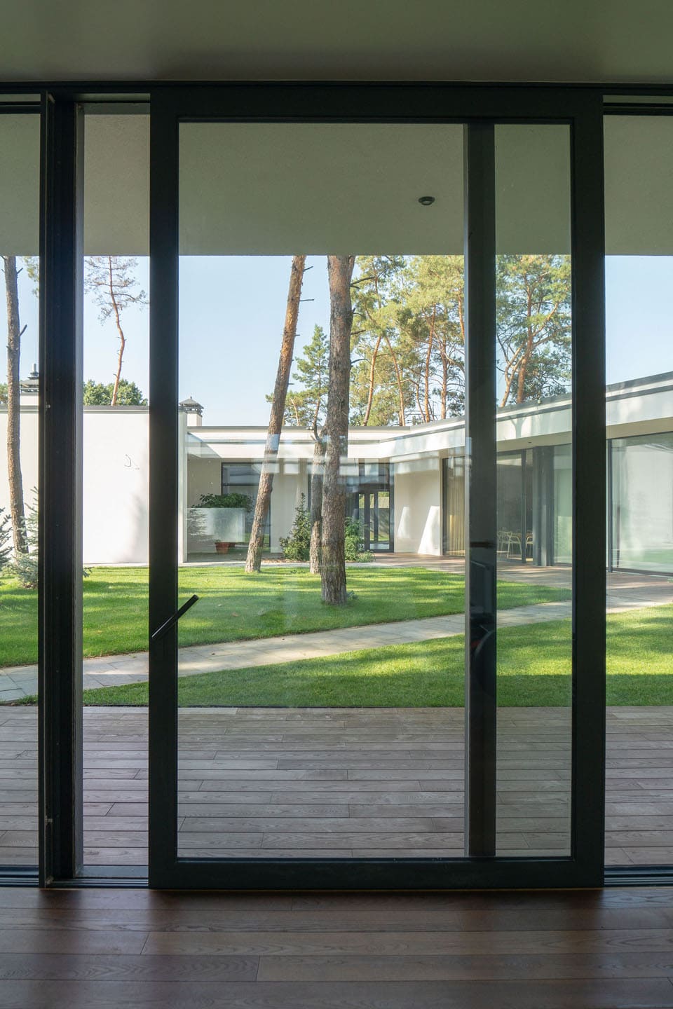 Это подъемно-сдвижная система, решенная в минималистском ключе, вплоть до деталей. Чтобы изготовить MasterPatio, требуются минимальные фрезерные операции, что в сочетании с простыми угловыми соединениями и просверленным дренажем в нижнем профиле позволяют произвести ее быстро и эффективно. Максимальная высота элементов 3,6 м, а идеальную передачу веса стекла на ролики слайдеров обеспечивают запатентованные опоры, повышая тем самым удобство работы сдвижных створок. Легкая и точная регулировка замка (3 мм) значительно упрощает установку системы на месте. Благодаря совместимости с MasterLine она безупречно сочетается с окнами и дверями, при этом акцент при разработке делался на сохранении чистоты линии обзора. Поэтому рамы и профили тут тонкие, чтобы обеспечить беспрепятственный обзор.