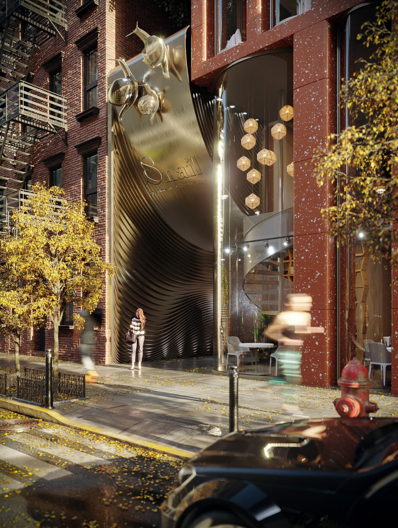 PRAGMATIKA.MEDIA: Первое, что бросается в глаза, когда рассматриваешь визуализации вашего нью-йоркского проекта, — огромные латунные улитки, поднимающиеся вверх от входной группы. И рабочее название комплекса использует этот образ…