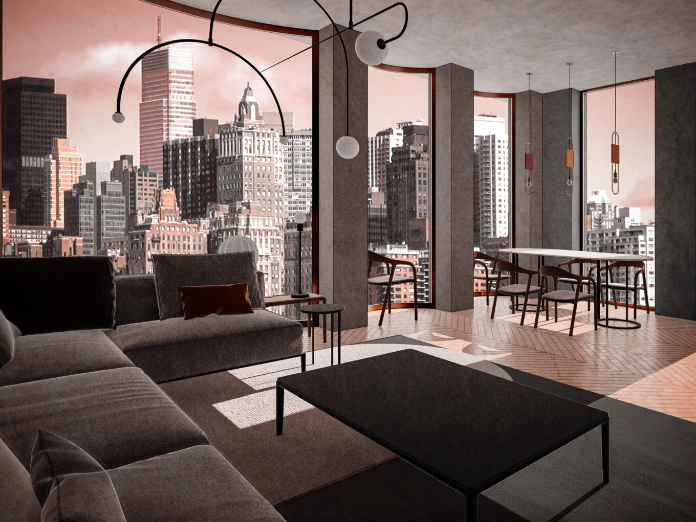 Эркеры формируют пространство для отдыха с панорамным видом на Манхэттен. Источник изображения: аrchimatika, 2019 г.