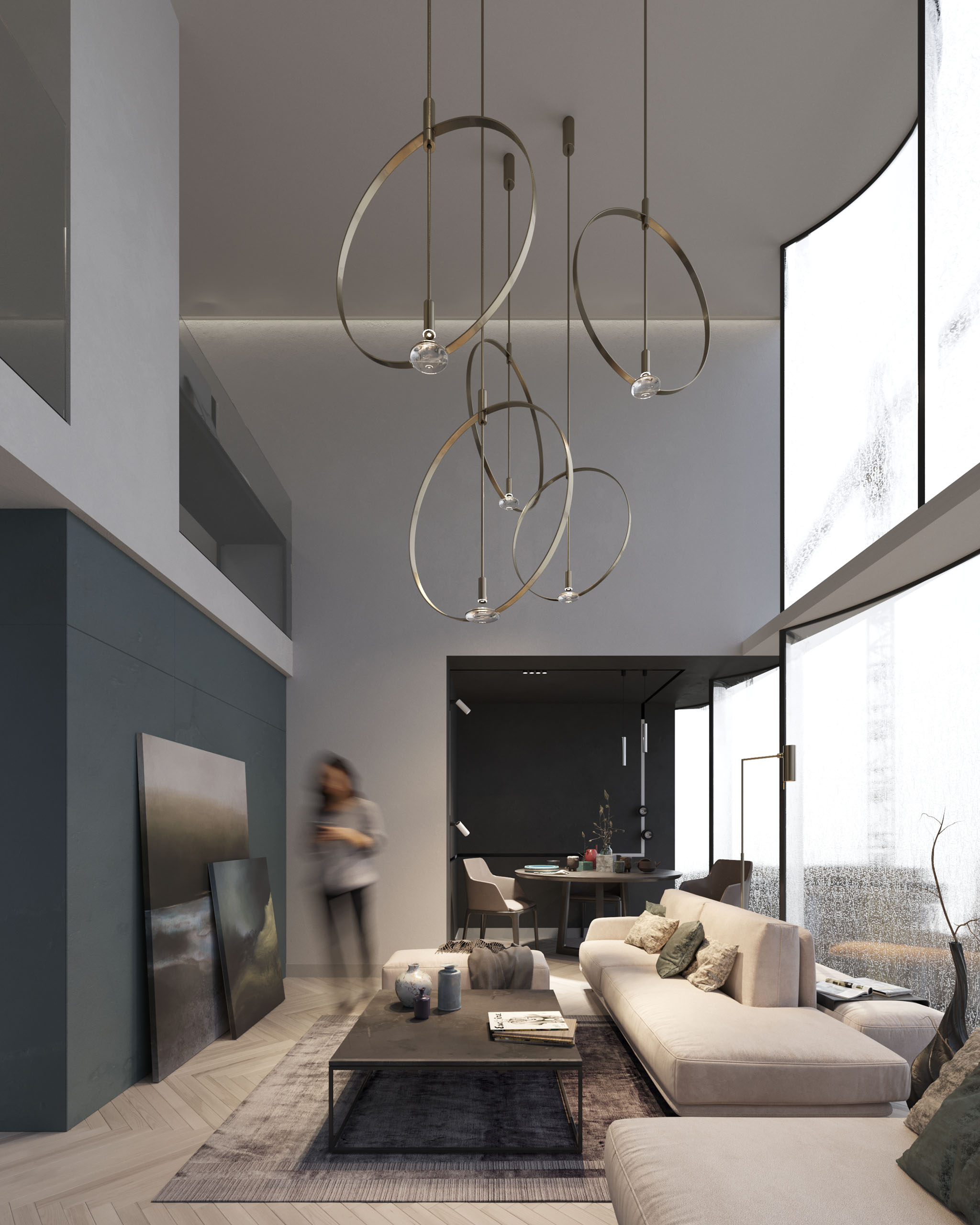 Кристина Малийова: Это мы и попытались воплотить в архитектуре. Наш американский партнер Myk Veret, когда описывал стиль жизни обитателей Нью-Йорка, подчеркнул, что людям очень важно иметь обособленную зону комфортности и приватности в спальнях и общих комнатах, где можно уединиться в кресле с книгой, бокалом вина или стаканом виски.