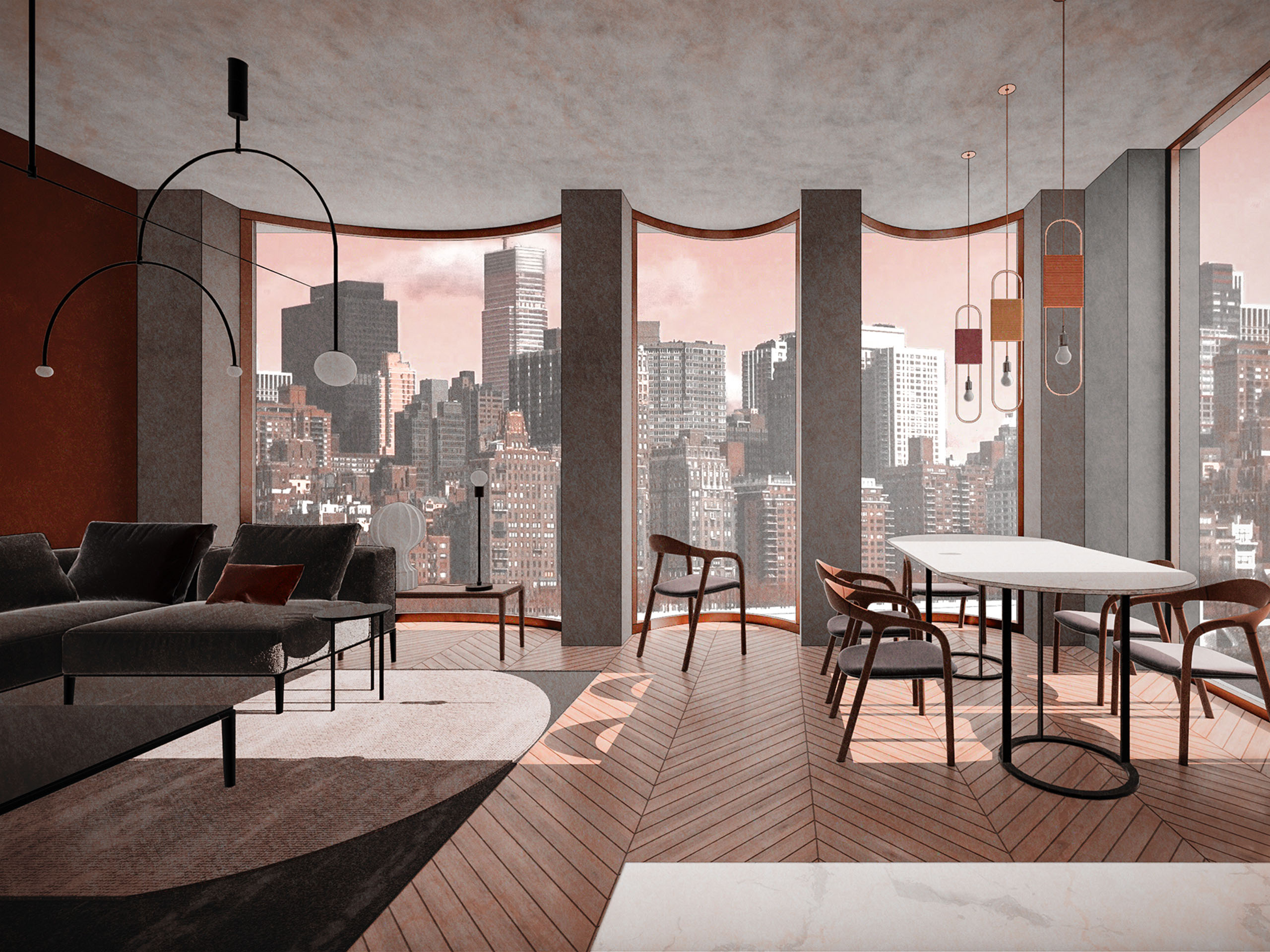 Эркеры формируют пространство для отдыха с панорамным видом на Манхэттен. Источник изображения: аrchimatika, 2019 г.