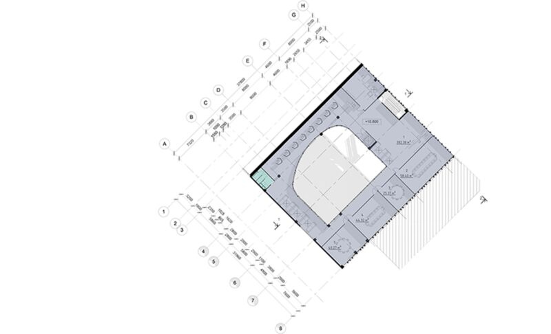 А. Т.: Мы скорее анализировали объекты, которые реконструировались в похожей градостроительной обстановке. На консоль вдохновило здание Рема Колхаса CCTV в Пекине с 75‑метровым консольным выносом. Мы решили, что консоль — это хороший прием, который добавит площадь и подчеркнет историческое здание в условиях плотной застройки. На стилевое оформление вдохновило здание UPI-2M, это хорватская архитектурная мастерская. Их архитектура очень современна и лаконична.