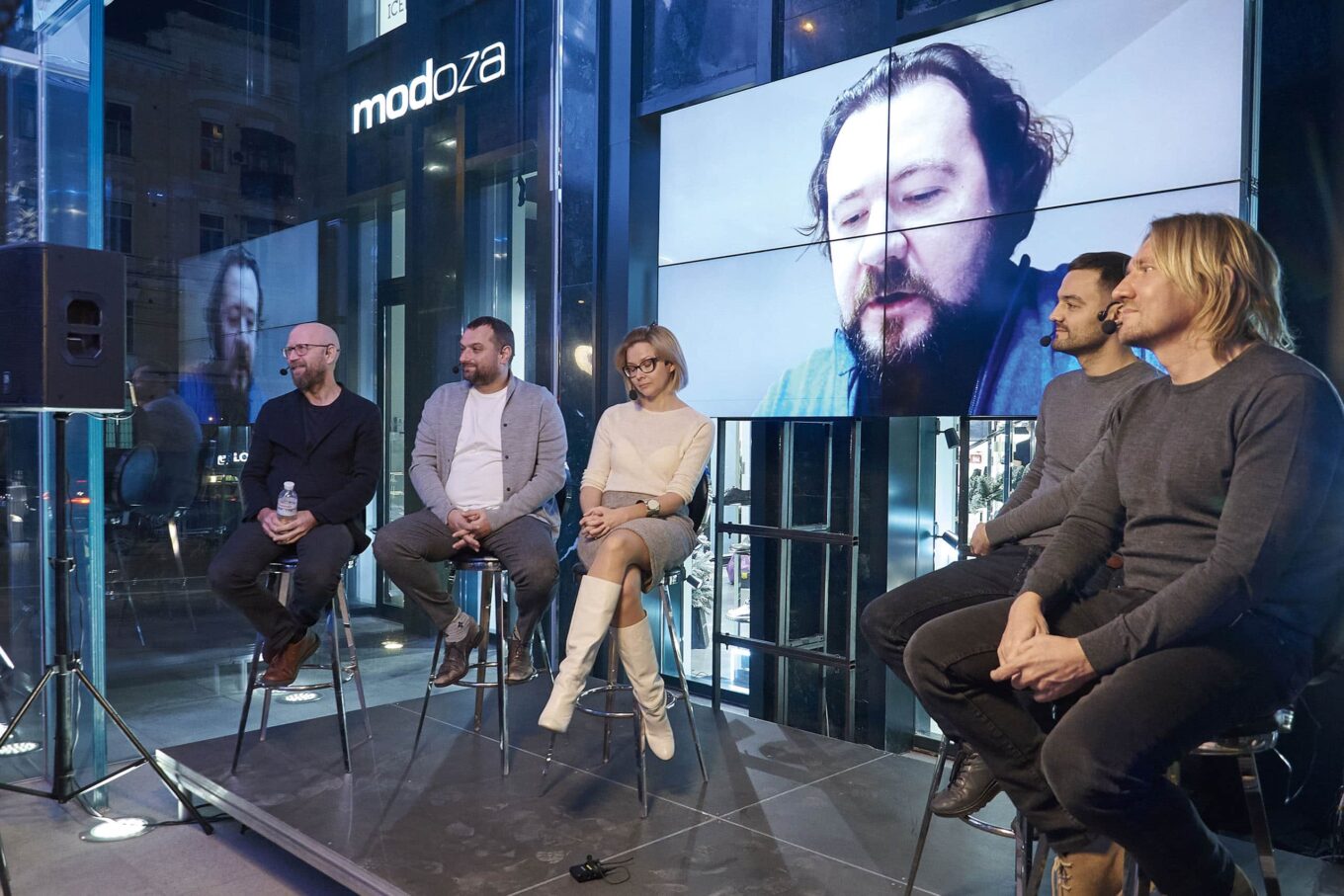 Спикеры дискуссии в «Кубе»: Олег Дроздов, Андрей Ваврыш, Юлия Полевая, Юлиан Чаплинский (дистанционно), Максим Коцюба, Дмитрий Васильев