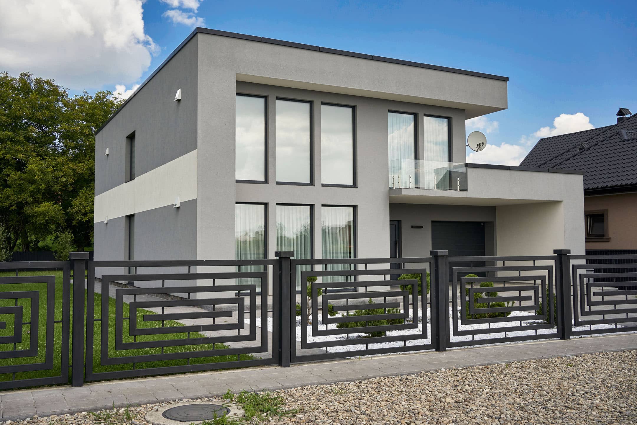 Для разных систем остекления в проекте порой используют разные материалы. Алюминиевые накладки на ПВХ-профили позволяют сочетать такие окна не только с металлическими «соседями по остеклению», но и с элементами экстерьера, например, ограждением участка