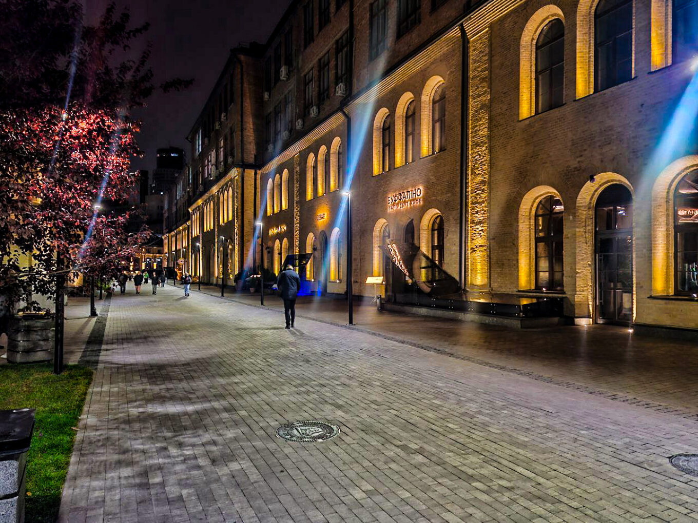 «Ми можемо бачити, як команда приділила увагу тому, щоб це світло було різне: фасадне, основне, акцентне тощо. Воно різноманітне, і кожен тип освітлення виконує своє унікальне завдання, не лишає сліпих плям на території проєкту. Це однозначний плюс у світловому оформленні A-Station, — зазначає Олександр. — Усі фасади будівель підсвічені однаково — архітектура акцентована в єдиному стилі, в єдиній температурі світла, і в темний час доби ми бачимо, що це будівлі одного ансамблю. Тепле світло дуже вдало підкреслює характер оригінальної архітектури, не “перетягує на себе ковдру” уваги від фактури фасадів — навпаки, виокремлює їхню автентику та історичний бекграунд локації загалом».