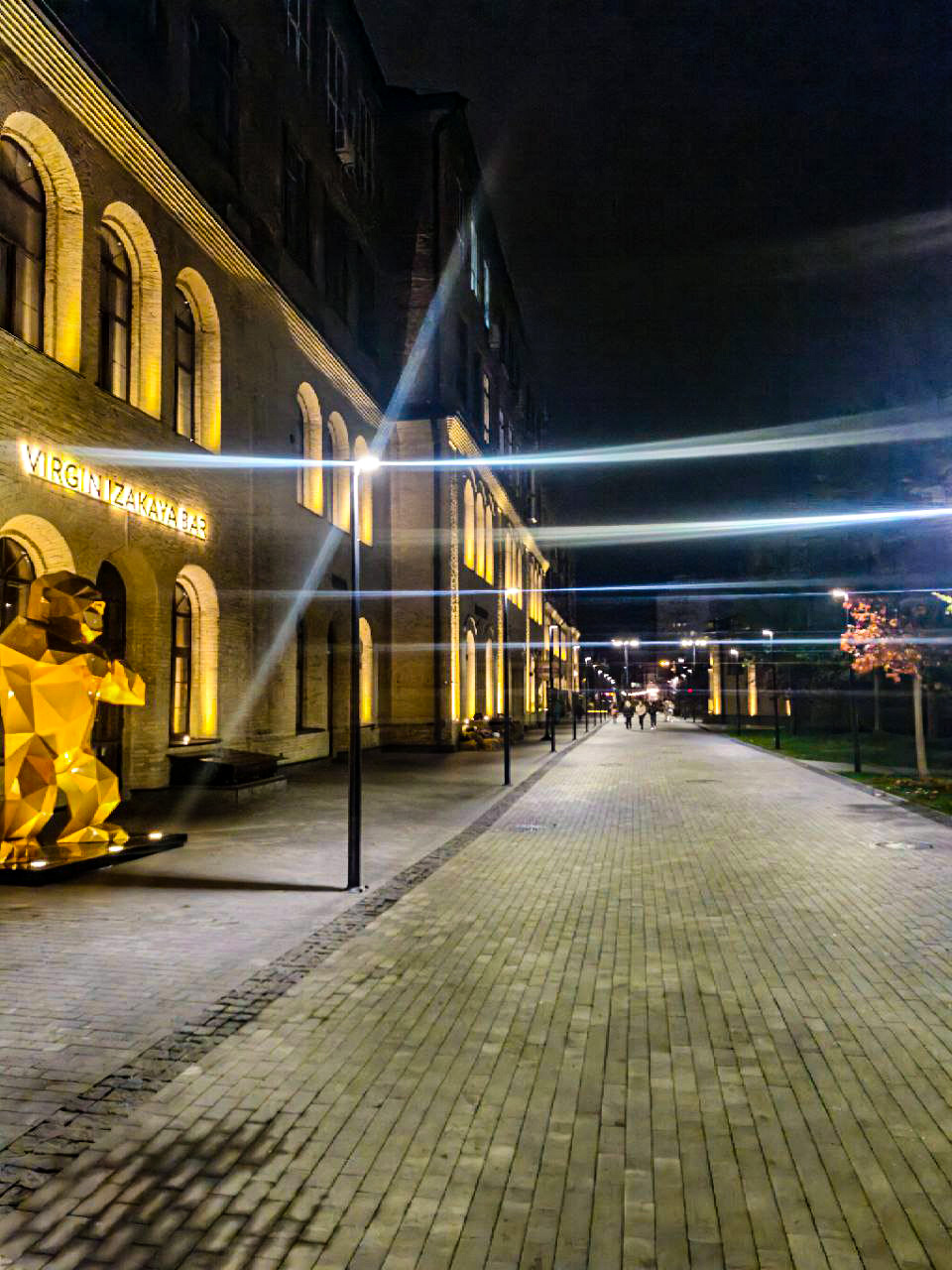 «На тлі такого яскравого білого світла візуально губляться і фасади, і активний перший поверх, — зазначає Олександр. — Збоку це має вигляд чогось такого, що явно не йтиме на користь тим самим закладам: люди не хочуть до тебе зайти, бо просто тебе не бачать, адже підсвітка доріжок інтуїтивно спонукає їх дивитися під ноги. Це питання навіть не відстані між стовпами, що зумовлює таке рясне освітлення, — здебільшого ліхтар сліпить і засвічує за рахунок неправильно підібраної лінзи. Вам дискомфортно зайвий раз підняти очі, бо згори на вас світить мало не прожектор — спрямований, без належного розсіювання. Загалом складається враження, з огляду на фахову майстерність команди, що це не могло бути навмисним рішенням. Майже певен, що це результат технічних обмежень, які виникли вже в процесі підбору приладів і реалізації, чи то пак просто залучення кількох різних підрядників.