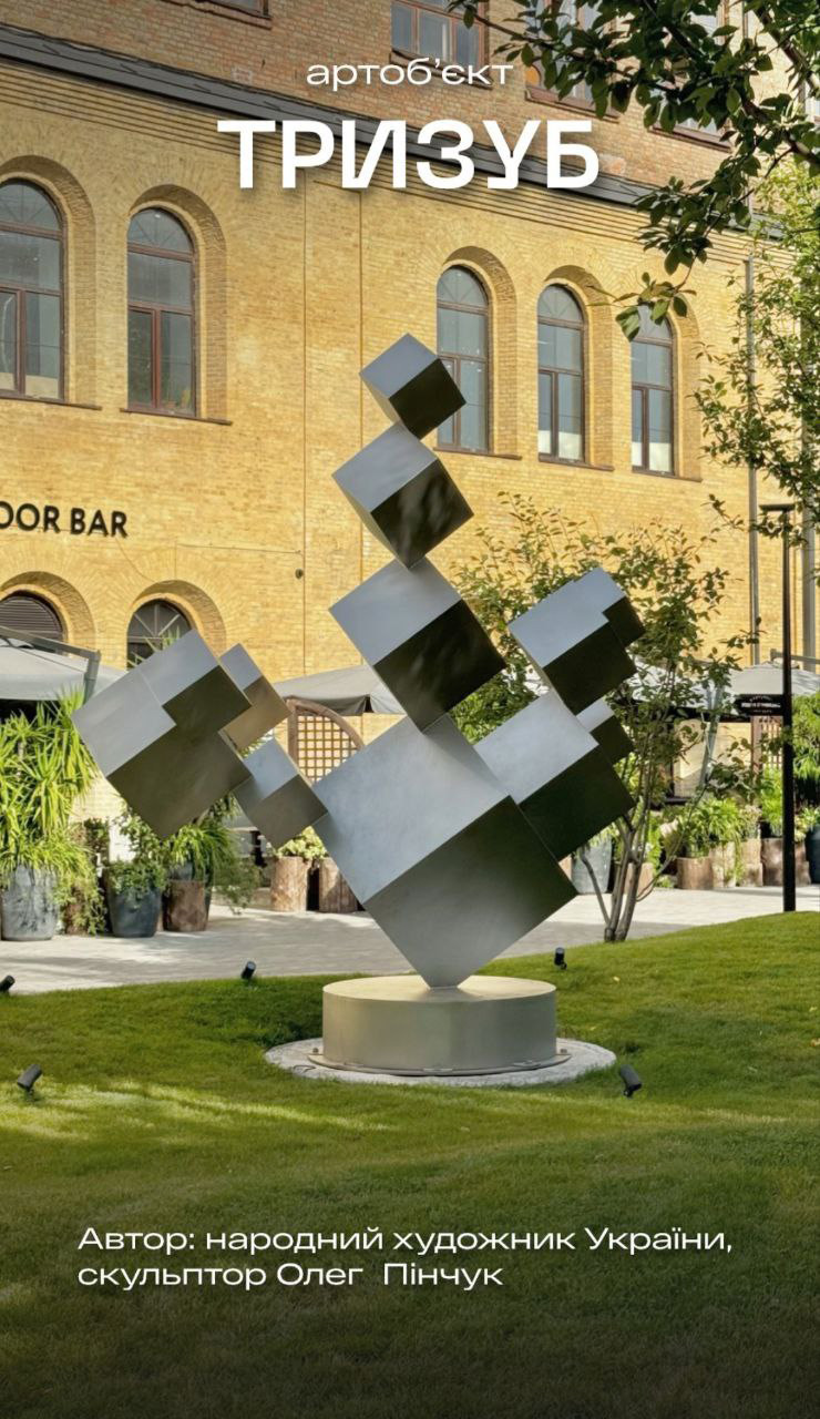 Скульптура «Куб/Перелицьована куля», створена у співавторстві Тетяни Павлишин-Святун та Олега Пінчука
