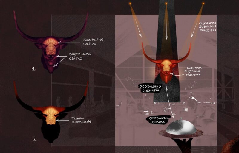 «Світло пояснює гостеві закладу на рівні відчуттів, де яка зона. Окрім цього, світло — це те, як ми розуміємо та розрізняємо матеріали, декори», — Ігор Сметана