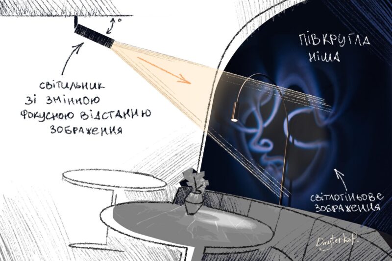 Ігор Сметана: «Пригадую проєкт, який наразі відкладений через воєнні дії: в одному з холів громадської будівлі ми запроєктували люстру, де за допомогою відбитого від скла й дифузного світла створюється каустичний ефект (Каустики — оптичні поверхні та криві, що виникають під час відображення та заломлення світла. Каустики можна описати як лінії чи поверхні, вздовж яких концентруються світлові промені. — Прим. ред.) і відбувається зміна денного спектра. В темнуватому холі мало природного світла, тому саме там була змога зобразити цю імітацію. Тобто саме зміст приміщення визначив можливість це зробити.