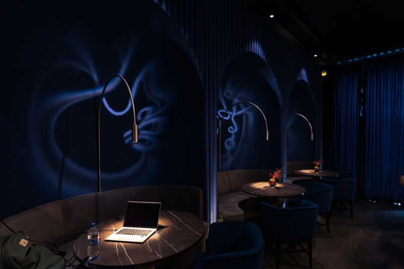 У дизайні інтер’єру та освітлювальних рішеннях використовується багато синього кольору. Крім прямої естетичної та концептуальної функції, він виступає певним «міксологічним ноу-хау» та апелює до розповсюджених проблем у барах: це нестача освітлення й контрастів, тривалість відвідування закладу гостями.