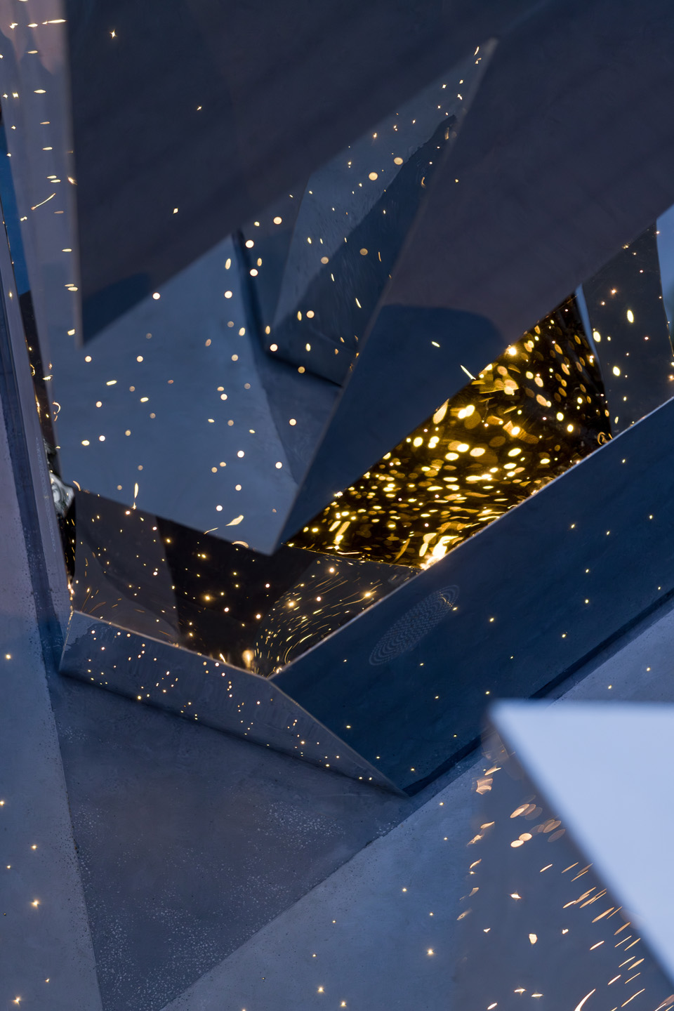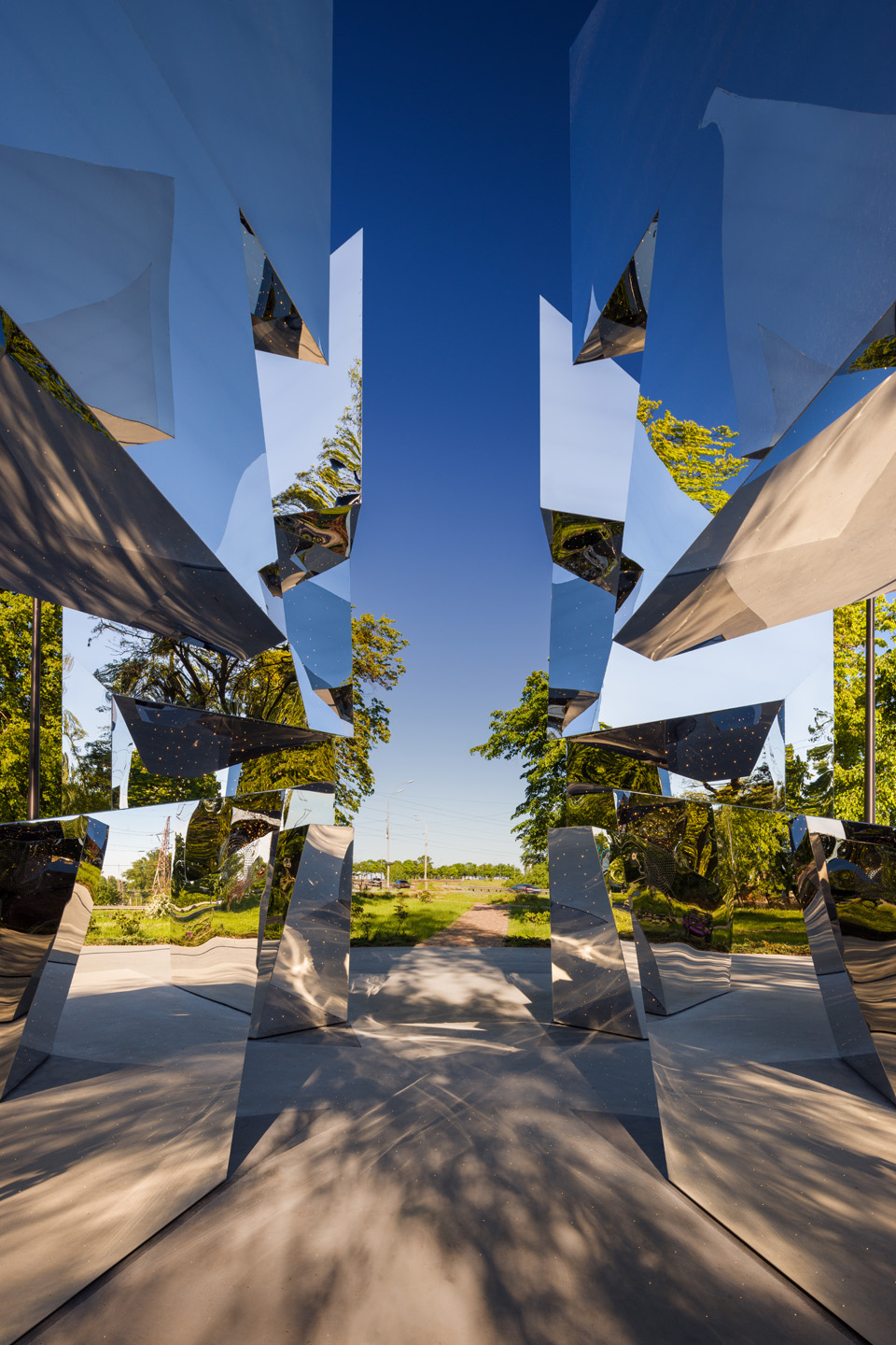 Вид на меморіал із погляду людини, яка перебуває всередині вночі. Зображення надане Kabluka Light & Digital Sculptures