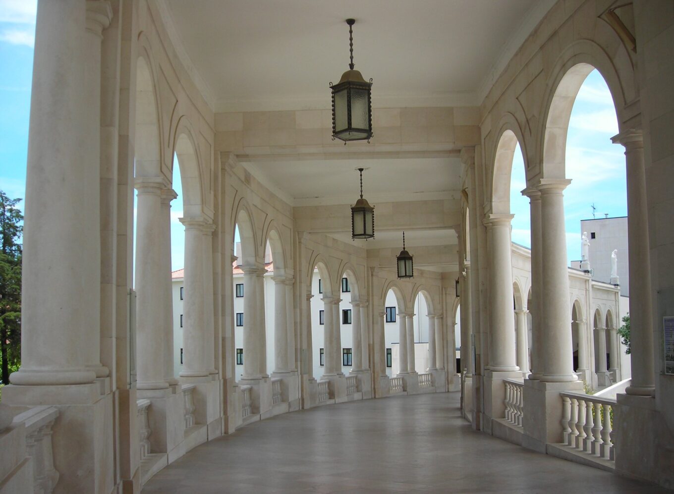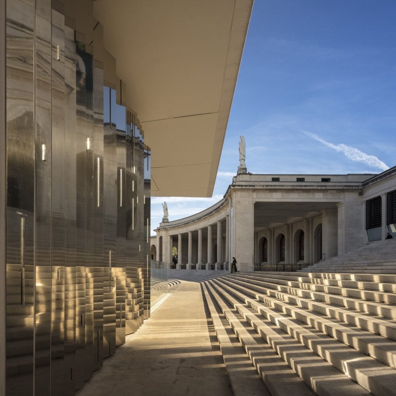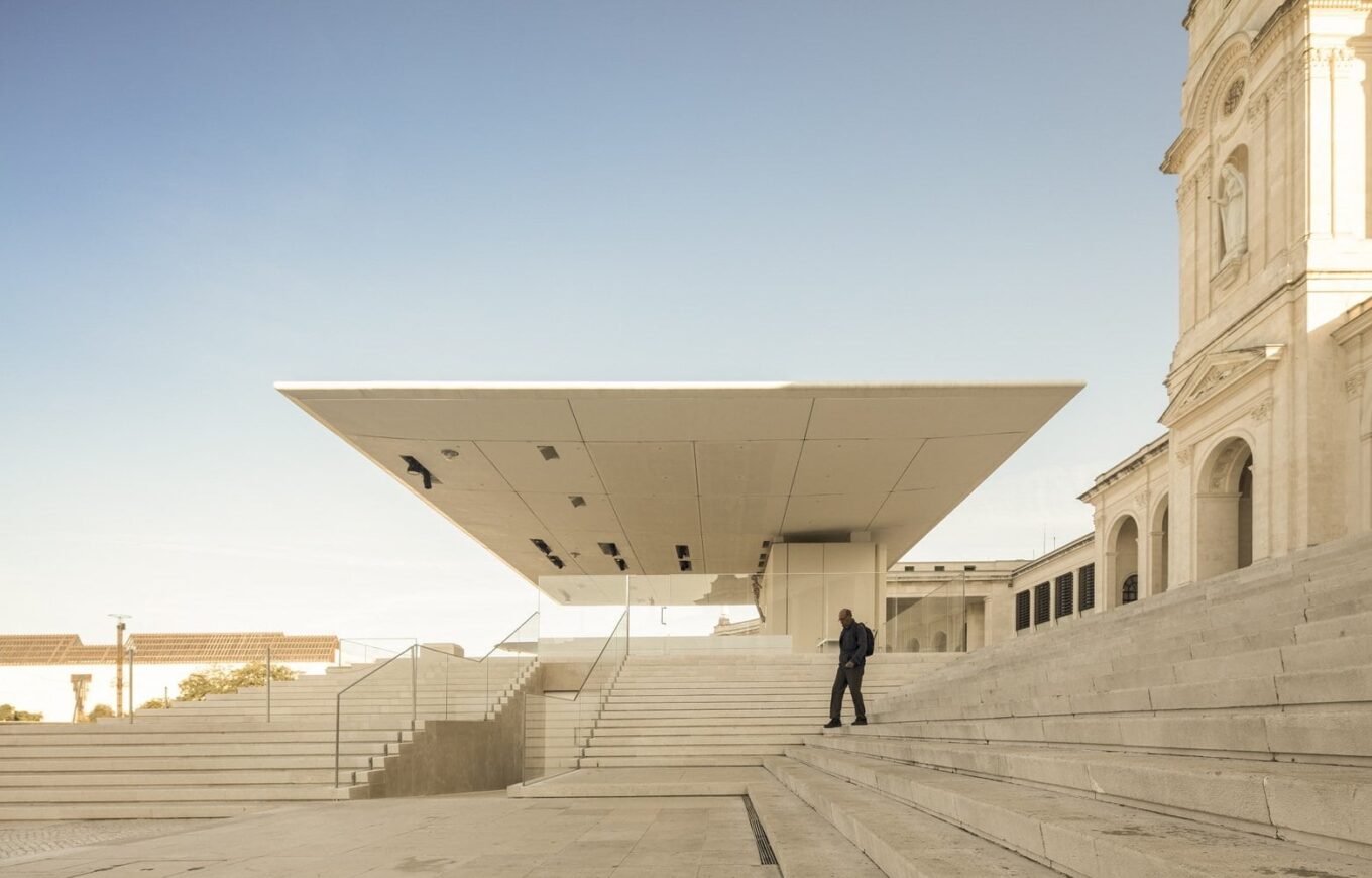 Португальская архитектор Паула Сантос спроектировала внешний архитектурный алтарь, интегрировав его в комплекс лестниц. Алтарь и хор, где проходит служба, защищает навес площадью в 600 квадратных метров. Стекловолоконная плоскость с белоснежным покрытием (белый – официальный цвет всех церквей в Португалии) опирается всего на один лаконичный блок из белого бетона.