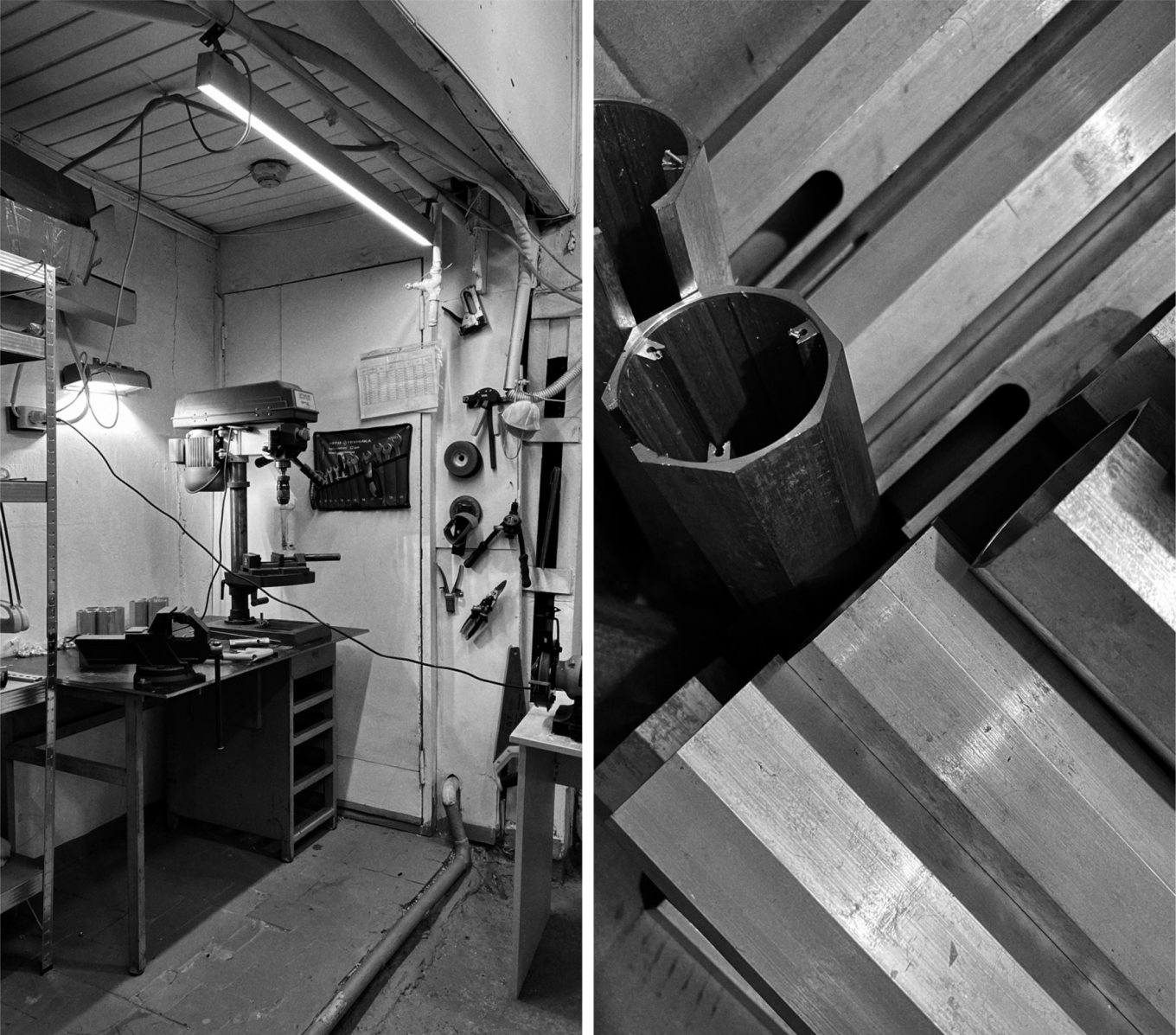 Друга колекція, PRYKRASHENA, більш складна технологічно. Її основа — це прості, майже архетипічні форми, але ускладнені, “прикрашені” за рахунок використання гранованого профілю та вимикача-намистини. Тут виготовлення самого профілю, а також підгін і доопрацювання всіх деталей — це велика кропітка робота, яка зрештою продовжується і до сьогоднішнього дня»