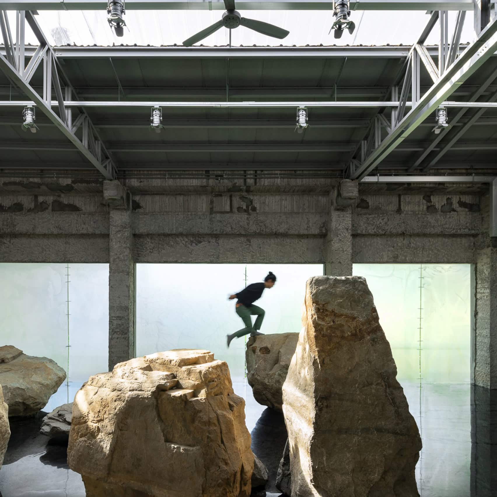 Теперь в этом заброшенном здании в лесу Тайваня появились классные комнаты, пространство для кухни и мастерские. Его фасад покрывает серебристая сельскохозяйственная сетка, защищающая от яркого солнечного света. А точкой притяжения служат обломки скал, сгруппированные в самом центре. «В основном внутреннем пространстве находится коллекция камней, собранных поблизости», — рассказывают архитекторы. Они перевернуты, повернуты и зафиксированы на месте так, чтобы использовать их в качестве замены повседневной мебели».