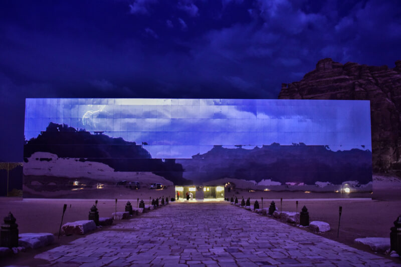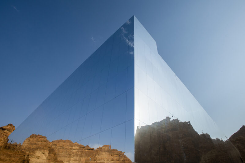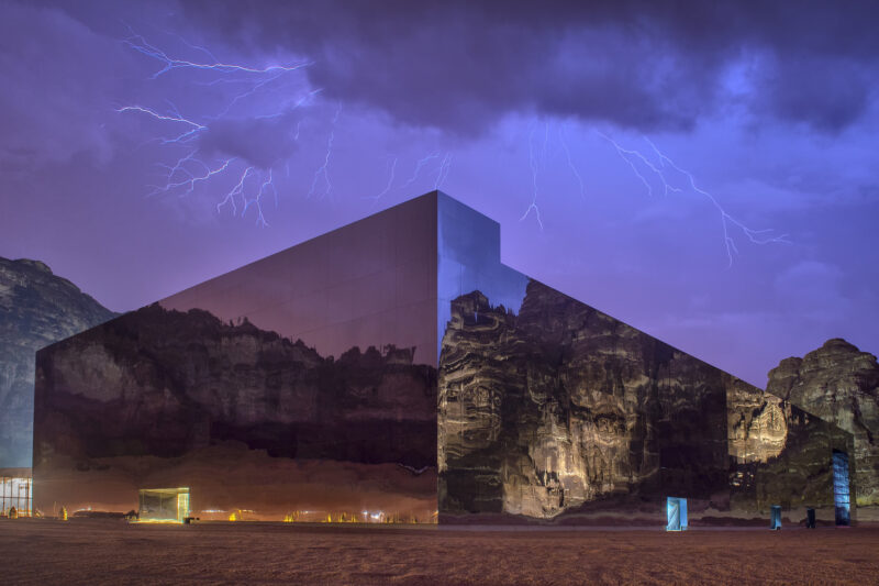 Студия Gio Forma в сотрудничестве с Black Engineering Dwc-Llc спроектировала инсталляцию на пересечении архитектуры и ленд-арта, частью которой стал театр Maraya (с арабского – отражение или зеркало). Здание представляет собой гигантский куб с зеркальными фасадами, в которых отражается ландшафт Аль-Ула. Maraya лишь подчеркивает красоту пустынного пейзажа, а не соревнуется с природой. Уникальный ландшафт сам по себе становится выставочным пространством.