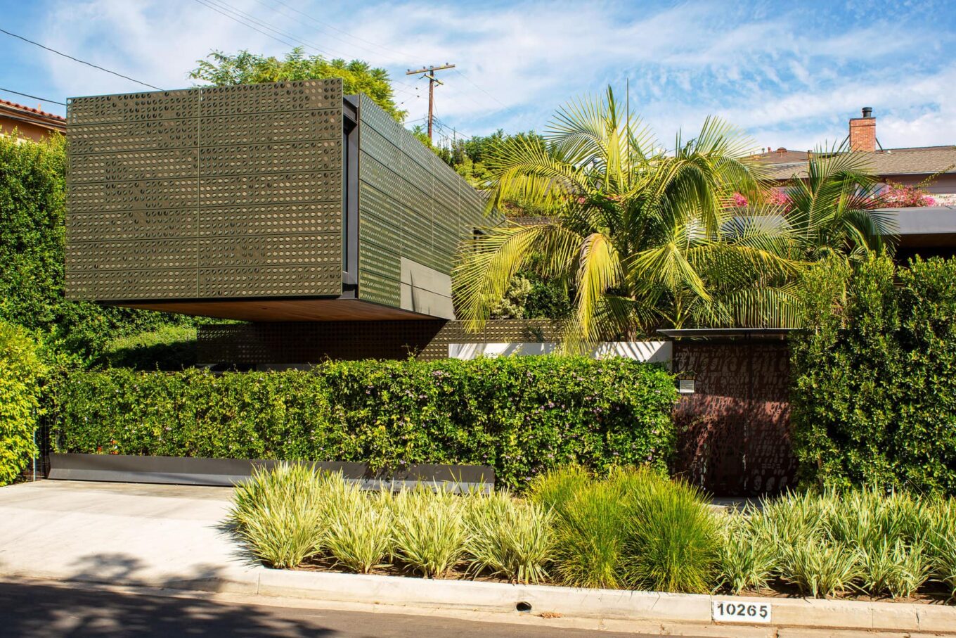 До речі, якщо гарненький будиночок Бредбері був позбавлений огорожі по периметру ділянки, то демонстративно «не гарненький» дім Мейна відгородився від вулиці подвійною лінією оборони: глухими стінами й металевим фасадом, що нагадує танкову броню, а потім ще й металевим забором із перфорованого кортену.