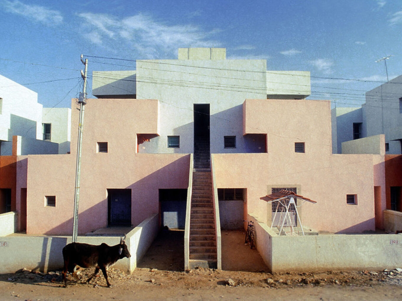 Попри критично малу ділянку, Доши спромігся не лише виконати основне завдання – поселити в ЖК значну кількість людей, а й зробити житлові будинки максимально функціональними. У кожному з них створили тераси, а для кращої вентиляції у приміщеннях – блоки із перфораціями. Водночас пофарбовані у яскраві кольори будівлі відсилають до традиційної індійської архітектури, що поєднується з модернізмом.