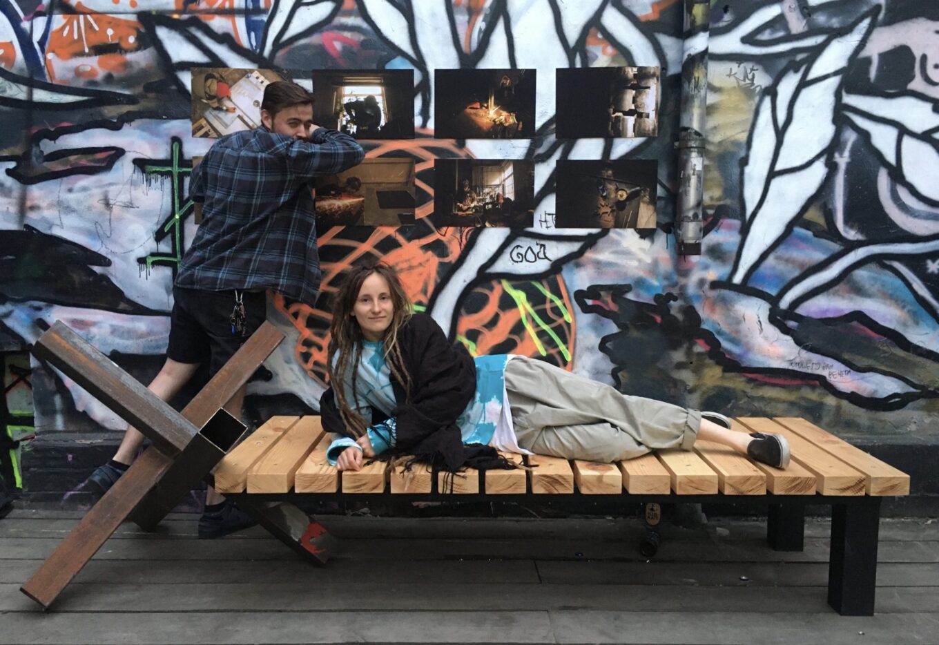 У Софії з’явилася ідея: «Я попросила 5 днів на підготовку і склала мануал: інструкцію щодо перетворення їжаків на елементи вуличних меблів, велопарковки, вуличного освітлення для міста. В команді з волонтерами «Космосу» Юрієм і Бобом ми практично реалізували два кейси: побудували лавочку, де їжак служить опорою, та велопарковку. Лавку представили на фестивалі «Мистецтво — зброя», а велопарковка виконує свою функцію біля штабу».