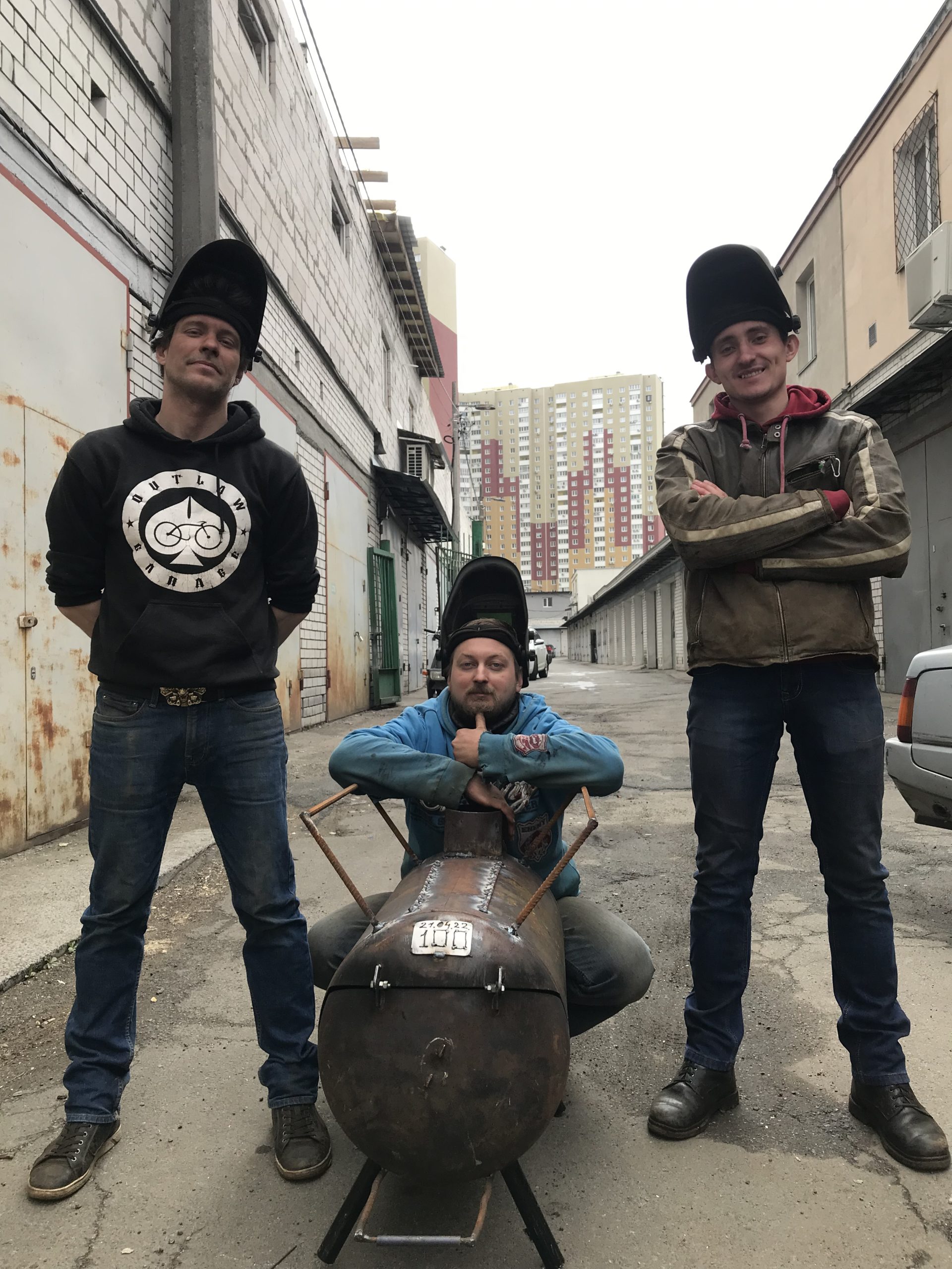 «Красиве сміття» — так Валерій Десятник, кастомайзер і мотомайстер, описує предмет із металу, що має вигляд артскульптури чи основи дизайнерського світильника. Насправді це корпус старого вертикального бойлера-сигари, з якого вирізали деталі для полум’ягасників, що використовуються в буржуйках. Таких заготовок на складі майстерні Outlaw Garage вже кілька, і Десятник обіцяє, що доведе їх до пуття після перемоги.