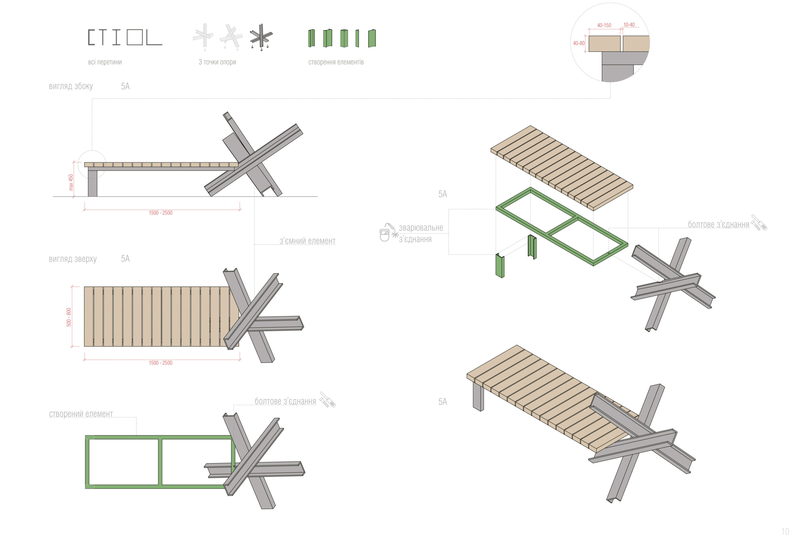 У Софії з’явилася ідея: «Я попросила 5 днів на підготовку і склала мануал: інструкцію щодо перетворення їжаків на елементи вуличних меблів, велопарковки, вуличного освітлення для міста. В команді з волонтерами «Космосу» Юрієм і Бобом ми практично реалізували два кейси: побудували лавочку, де їжак служить опорою, та велопарковку. Лавку представили на фестивалі «Мистецтво — зброя», а велопарковка виконує свою функцію біля штабу».