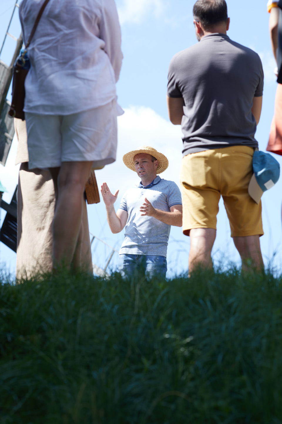 «Біля села могло бути від 10 до 80 вітряків. Вони були справжніми центрами спілкування: люди тут спілкувалися, укладали угоди й домовлялися про кооперацію чи навіть одруження дітей. Влітку, коли вітряки працювали рідше, до них приходила молодь. До речі, мельникові було б значно веселіше, якби вони не просто влаштовували біля вітряка веселощі, але й допомагали йому ремонтуватися, адже десь через півтори тонни зерна жорна доводилося наковувати заново. Допомога була потрібна мельникові ще й для того, щоб зупинити вітряк, адже щоб зафіксувати крила навіть при вітрі швидкістю 6–7 метрів за секунду, їх спочатку треба було поставити до вітру боком. Інакше це просто неможливо. До речі, ми тримаємо крила своїх вітряків на ланцюгах, адже знаємо, що зупинити їх дуже важко. Якось ми намагалися спинити їх під час урагану, і шість величезних хлопаків, які тоді тримали крила, злетіли в повітря. Після всього сказаного вас не здивує те, що мірошникові часом доводилося навіть не спати вночі, адже якщо починався сильний вітер, він мусив скеровувати чи повертати вітряк або знімати з нього дошки — робити все потрібне для того, щоб крила не зламалися. Він жив, як моряк у морі», — розповів екскурсовод.