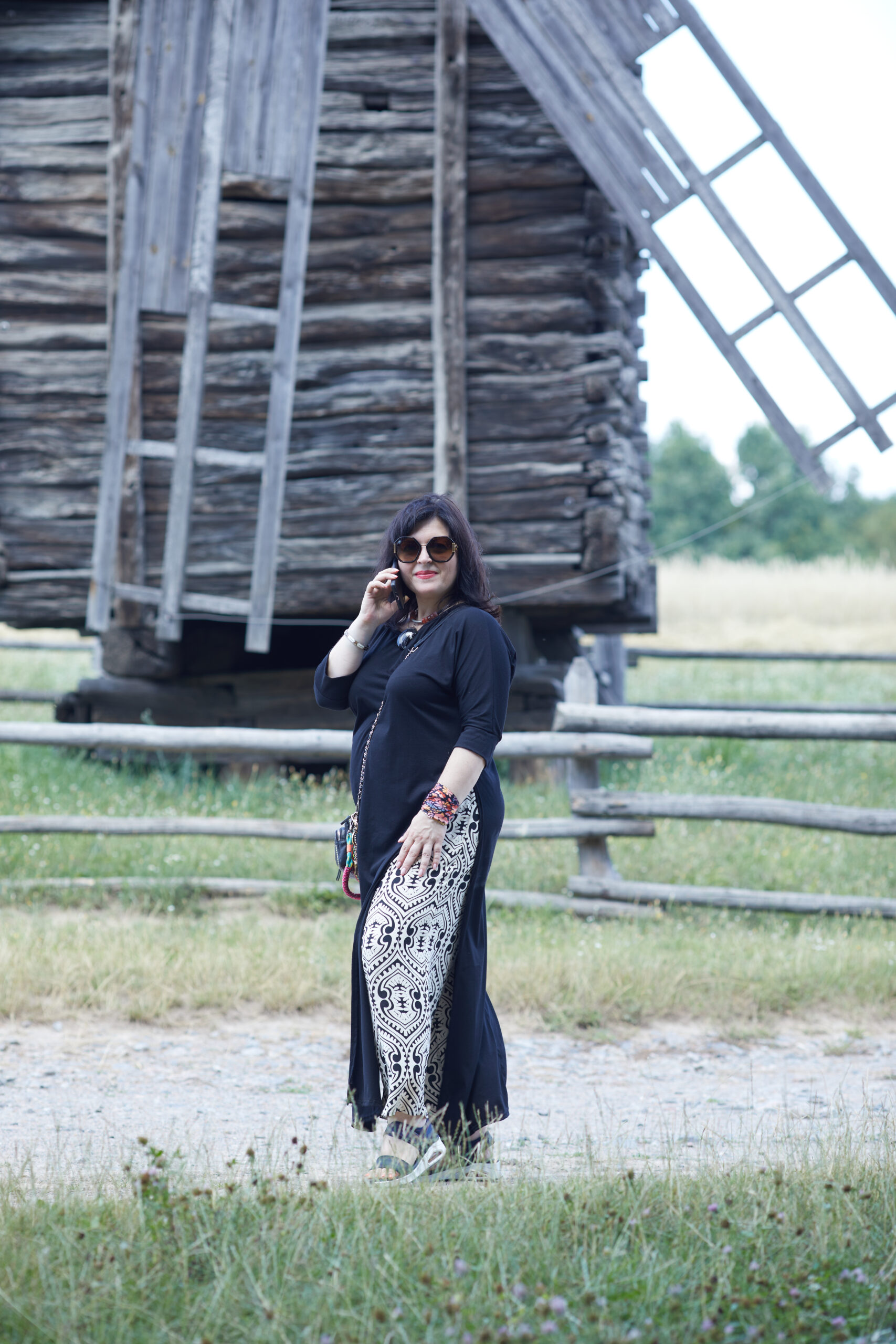 «Особливість вітряків із Поділля й Буковини, — продовжив екскурсовод, — полягає в тому, що сходи, які ведуть на другий ярус, розташовані ззовні. В подільських їх ще підтримує кронштейн, що зветься п’ятнар. А ось цей вітряк із буковинського села Лівинці має розширення на другому ярусі і дві пари жорен, а це означає, що він розрахований на два посади. Цей вал має замість одного палечного колеса два, тому він, таким чином, обертає два веретена й дві пари жорен, що дозволяє отримувати приблизно у 1,8 рази більше борошна. Щодо потужності, то вона залежала, зокрема, і від крил — їх намагалися зробили якомога довшими, щоб вітряк міг працювати навіть при малому вітрі. Крила південних вітряків могли мати довжину 14 метрів. Зверніть увагу: крила фіксували навіть зсередини — намертво», — наголосив Руслан Дубина.
