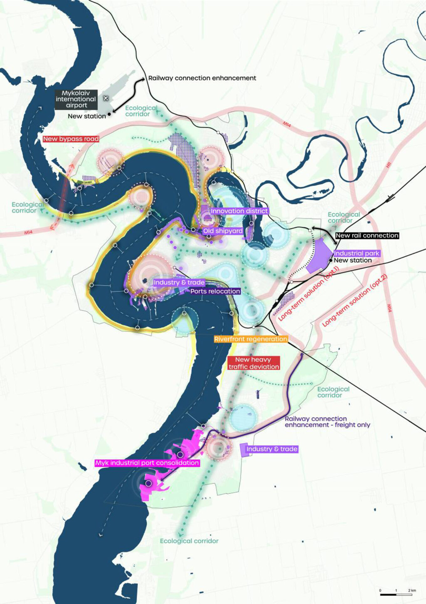 P.M.: Наскільки пілотні проєкти «Аквапорту», реновації суднобудівного заводу та індустріального парку на півдні Миколаєва пов’язані з генеральним планом міста? Чи коректно їх називати автономними проєктами, чи це повноцінні складники генплану?