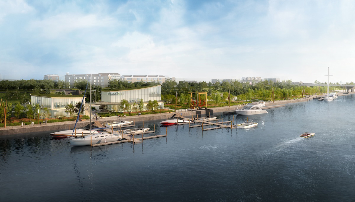 AQUAPORT міститиме рекреаційну та комерційну забудову, водночас більшість території — це зелена зона, тож команда One Works залучила ландшафтних дизайнерів, щоб дбайливо підійти до екологічного складника. Заплановані також готелі, заклади, громадський пляж і ще одна пристань, яку створять на базі станції човнів: автори проєкту акцентують на тому, що переосмислюють наявну інфраструктуру, надаючи їй сучасних сенсів.