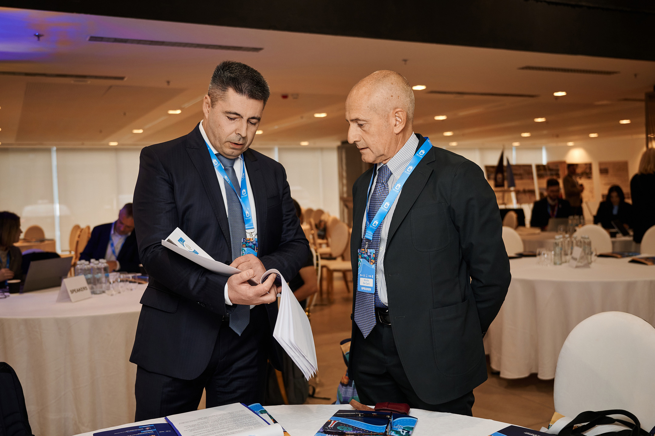 Директор Української асоціації центрів підтримки бізнесу Артем Ващиленко та керівний партнер компанії One Works Джуліо де Карлі під час конференції, присвяченої відбудові Миколаєва. Фото: Сергій Пірієв / ПРООН в Україні