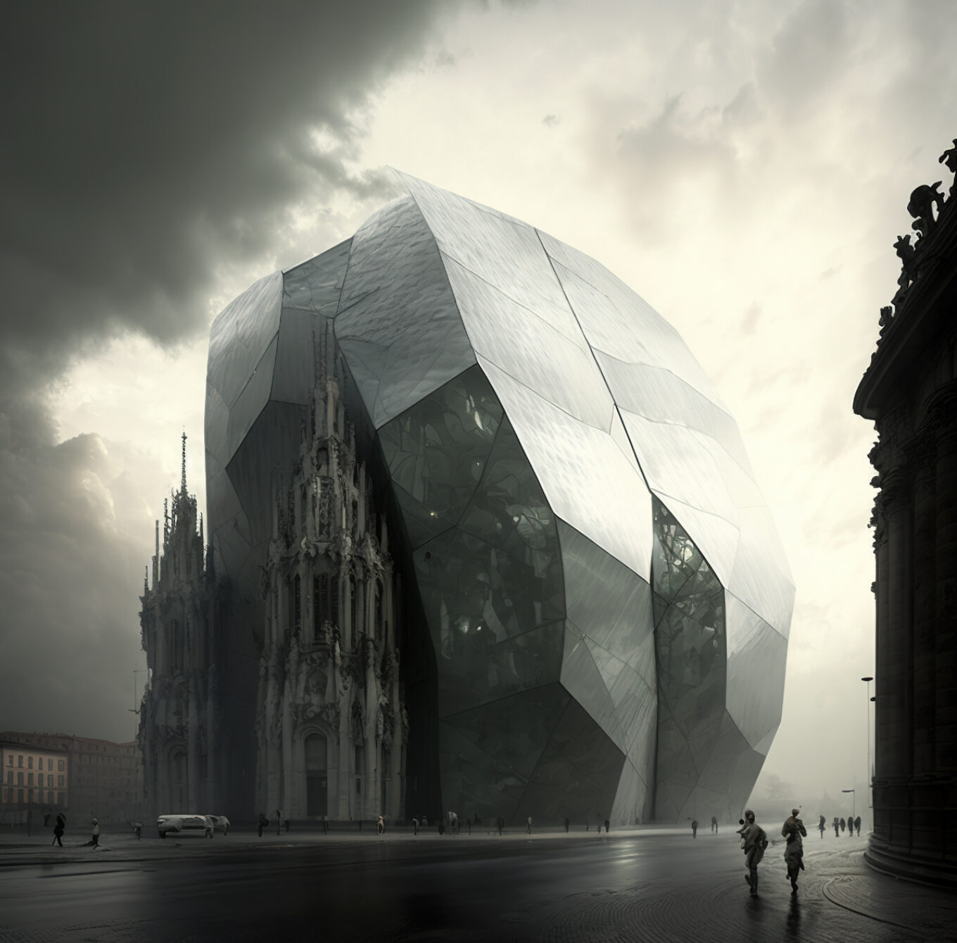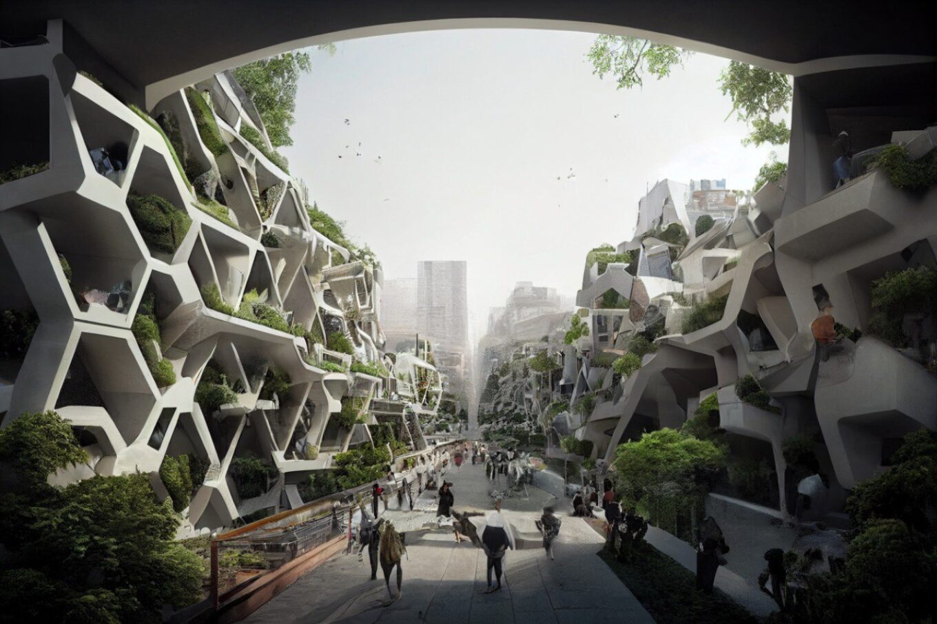 «Коли ти даєш запит Midjourney згенерувати щось футуристичне і щось із майбутнього, програма пропонує щось середнє між Аватаром, Zaha Hadid, київською забудовою і типовим голлівудським фільмом про майбутнє. У людей у голові переважно все одно майбутнє — це щось схоже на «П’ятий елемент», просто не таке жахливе. Це висотні та великі об’єми, масивні й монструозні. Близько п’яти тисяч людей живуть в одній будівлі, і для того, щоб там якось можна було жити, на балконах встановлені дерева. Ніхто не пропонує в майбутньому пам’ятати про Яна Ґейла», — зазначає Морозов.