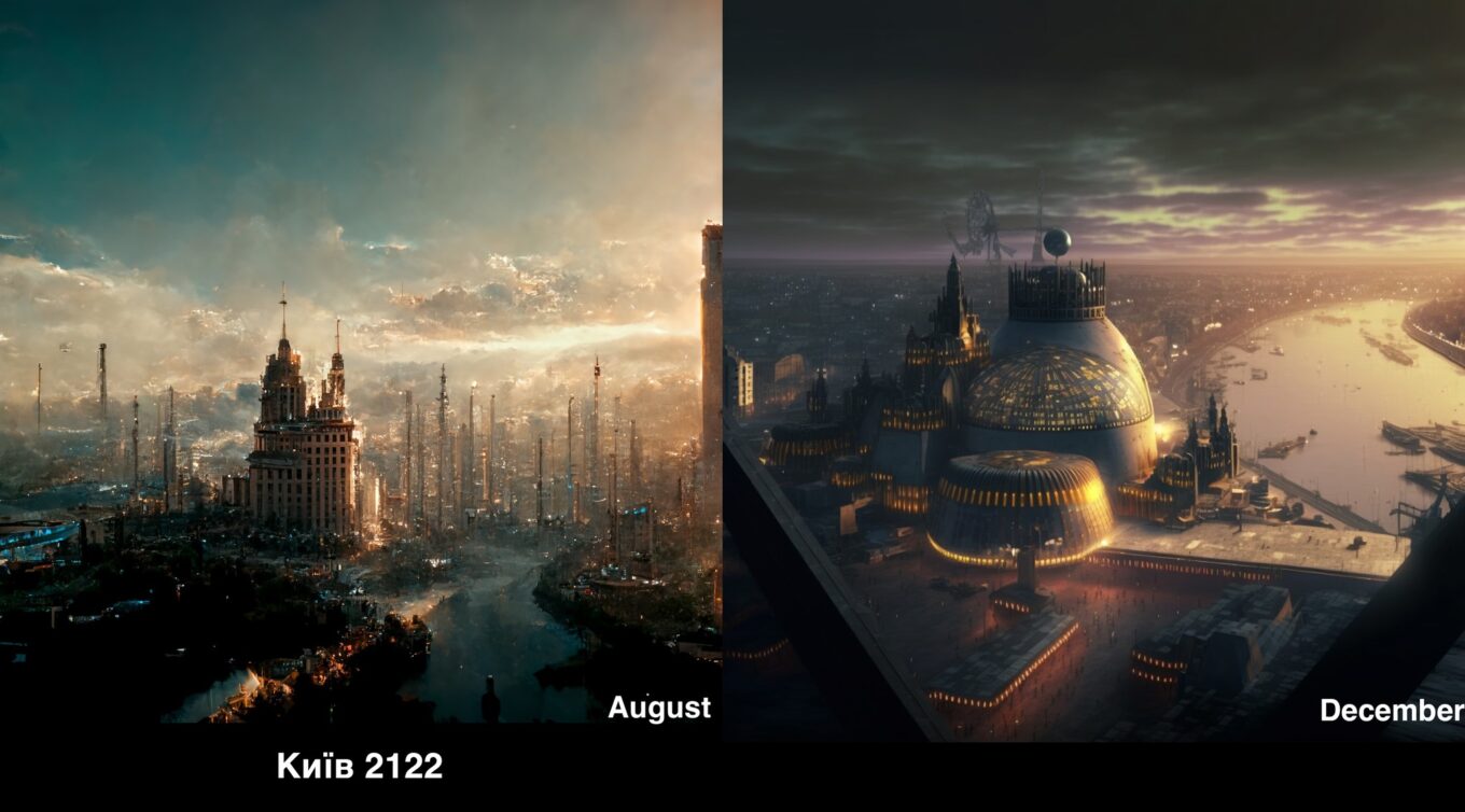 Дмитро Сівак демонструє еволюцію розвитку нейромереж. Зображення були створені Midjourney за одним й тим самим запитом у серпні та грудні 2022 року.