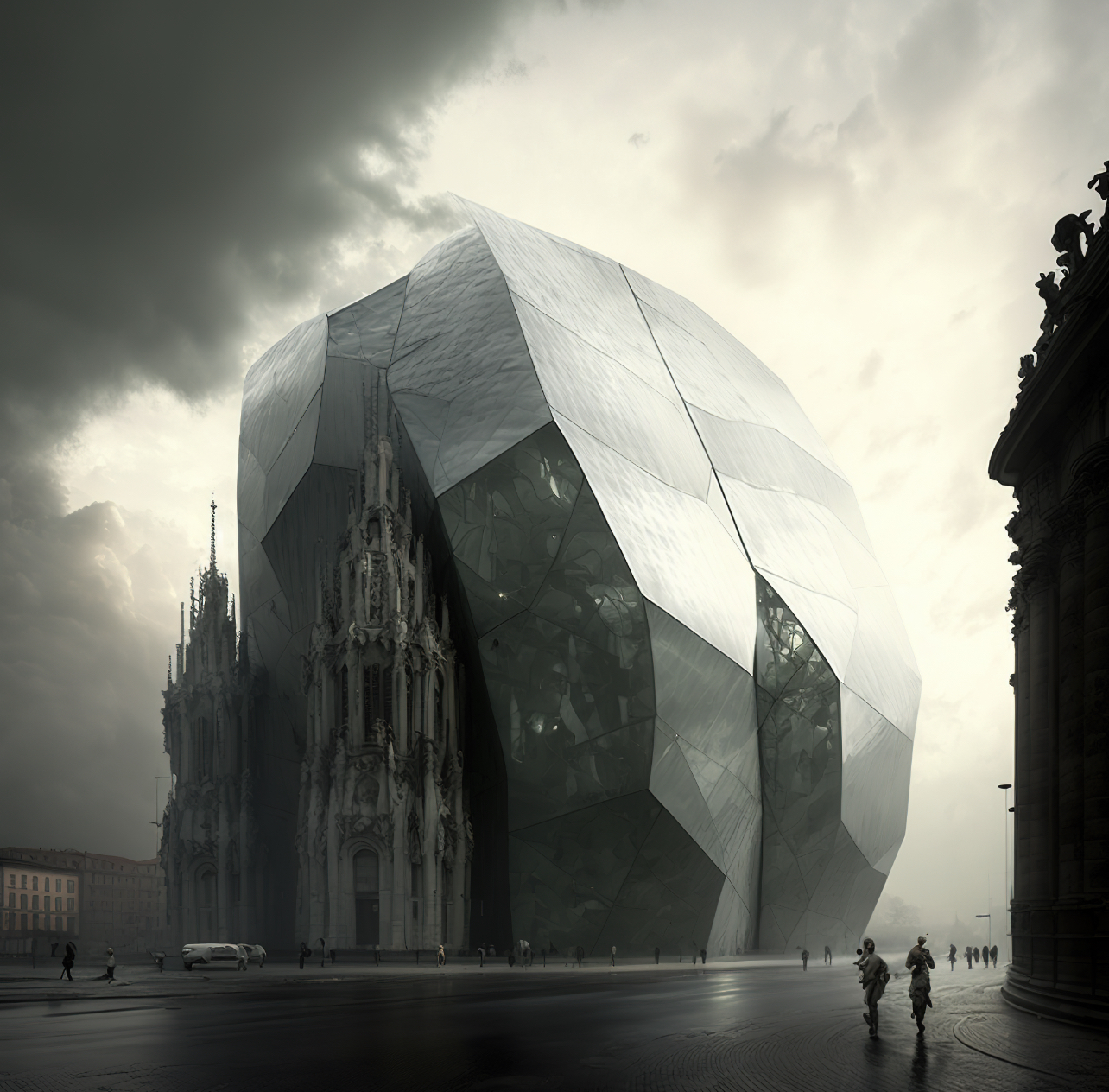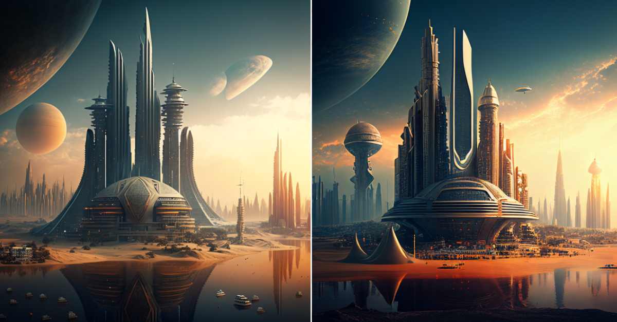 Так, переглядаючи в Мережі створені за допомогою ШІ архітектурні витвори, тут і там натикаєшся на те, що здавалося неможливим поєднати. Цілі підводні міста у стилі стимпанк, високі хмарочоси, ніби спроєктовані самим Гауді, сюрреалістичні будівлі з вигадливими фасадами й мудрованими елементами — нові інструменти відкривають безмежні можливості для творчої уяви та самовираження.