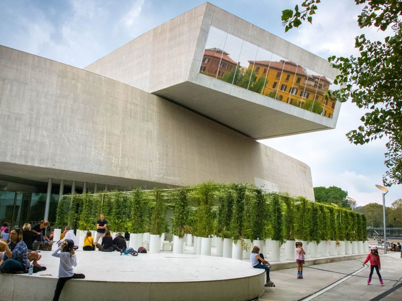 Популярная среди туристов и жителей Рима общественная площадь перед музеем современного искусства MAXXI, построенном по проекту Захи Хадид. Фото: Ирина Исаченко