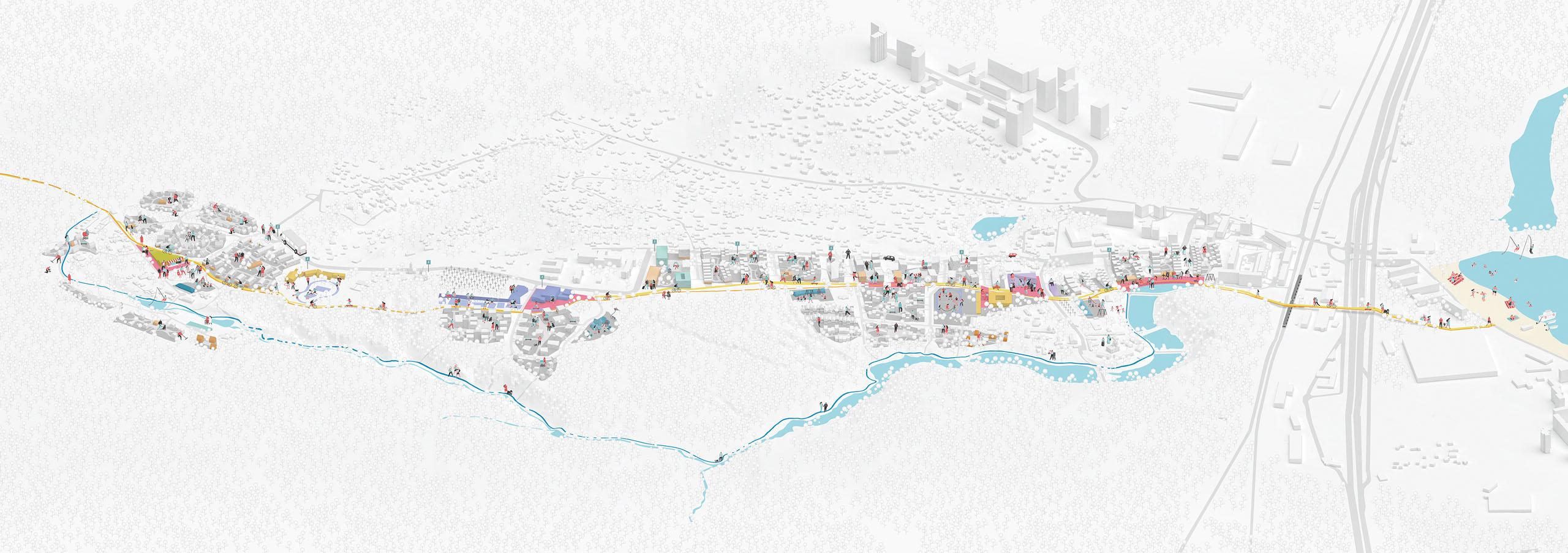 Проект «идеального поселения», который предложили SAGA Development и Perfect Group совместно с архитектурными бюро Architectural Prescription и ZOTOV&CO (разработчики концепции развития исторической местности Китаево*), вообще не предполагает заборов, как заверил автор проекта Гриша Зотов. Многочисленные общественные пространства, сконцентрированные вдоль пешеходной оси поселка, а также пляжи, набережные и маршруты вокруг Китаевских озер должны стать максимально доступными и удобными. Для жителей кварталов, окружающих территорию проектирования, именно угроза возникновения закрытого анклава является главным страхом, который сегодня блокирует диалог между стейкхолдерами. Люди опасаются, что новое жилье перекроет доступ к рекреационной зоне, пусть сегодня неухоженной и замусоренной, но доступной. Между тем авторы концепции и представители девелоперской компании настаивают, что прежде всего речь идет о создании открытой, комфортной, инновационной общегородской среды.