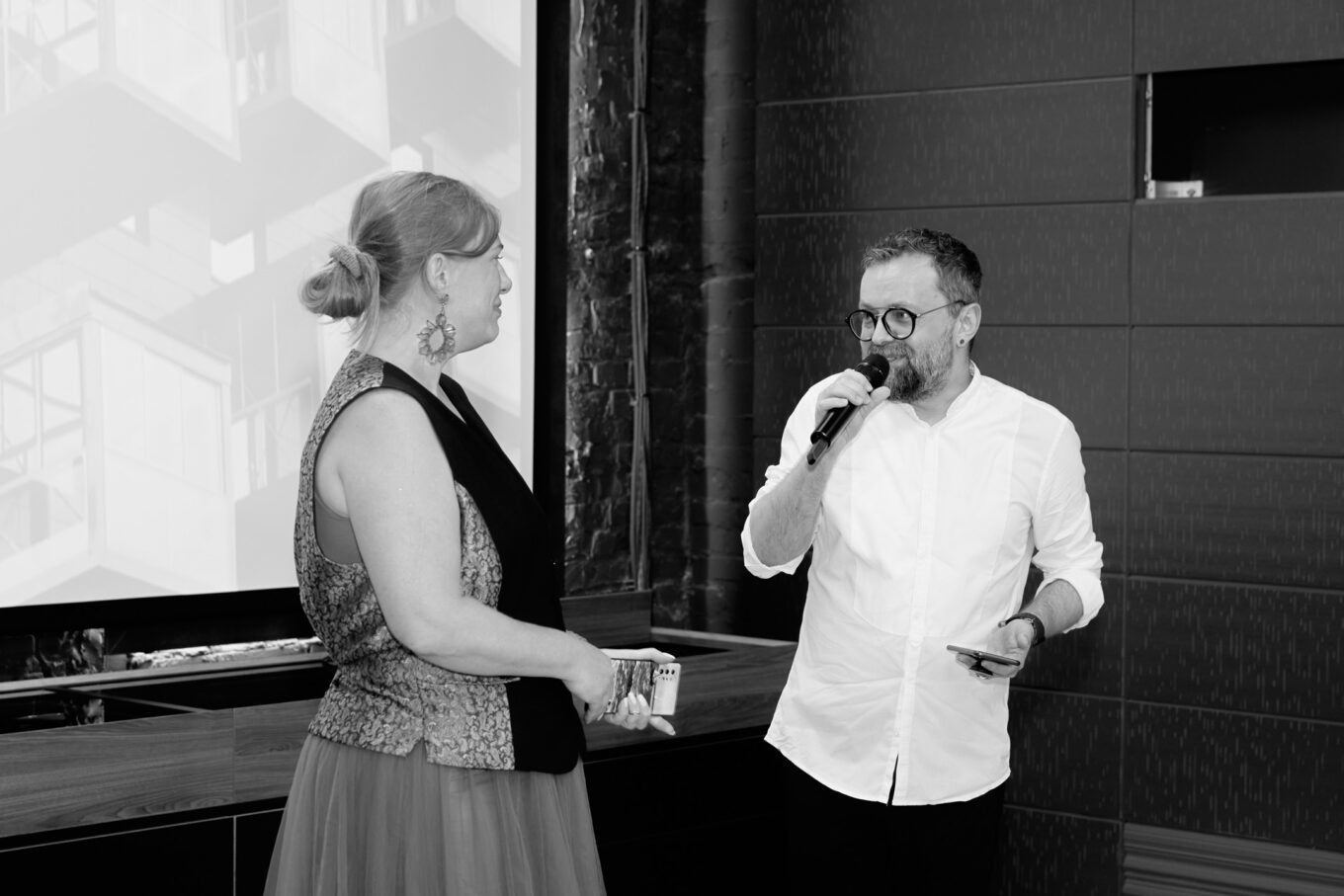 Продовжив теоретичну частину вечора Святослав Шилін, CEO компанії BUDZIRKA. «У красивих будівлях живуть щасливі люди. Статистика з Miasteczko Wilanów це підтверджує. Тому наша з вами місія — правильна», — сказав Шилін.