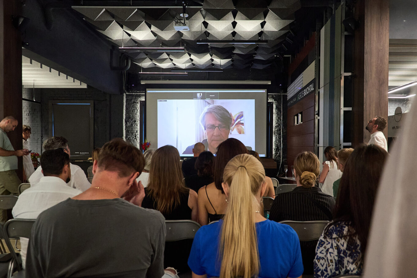 Гі Перрі, американський архітектор і автор концепції Miasteczko Wilanów, приєднався до присутніх відеозв’язком із Південної Каліфорнії. Фото:Юрій Ферендович